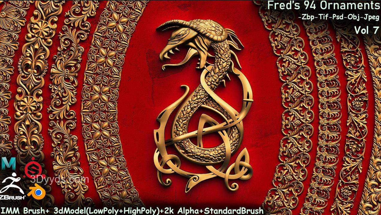 包括:IMM笔刷+标准笔刷,16位Alpha/高度图+3D模型(低多边形-高多边形)+掩模(黑/白Alpha) 这个套装有4个不同的类别,经过精心组织。