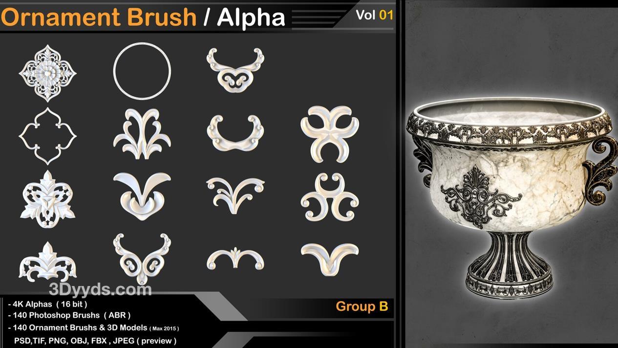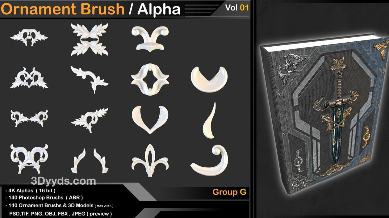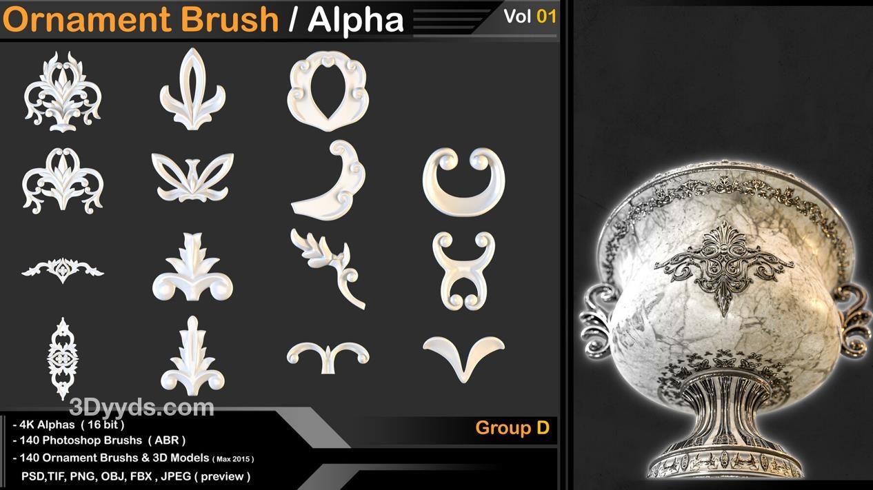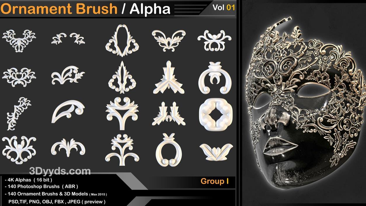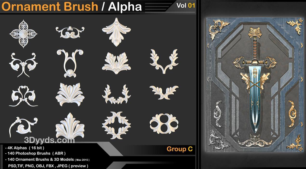 这个产品包括140个装饰套件Kitbash笔刷/Alpha/3D模型/IMM 第01卷