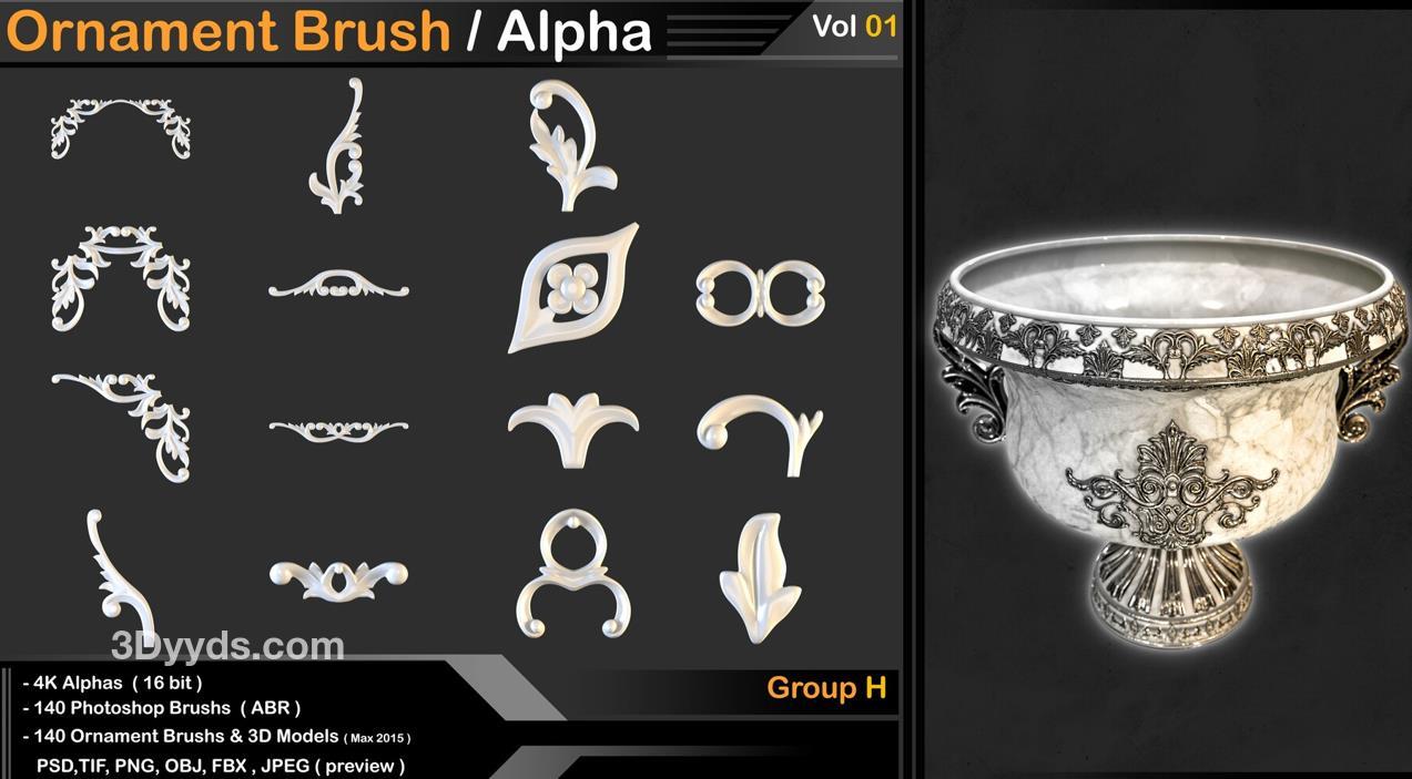 IMM笔刷((ZBrush)) TIF Alpha(4K) Blender文件((混合)) 资源浏览器文件((混合))ver:3.5 OBJ 3D Max 2020 JPEG(预览) 448分钟教程视频 所有模型都已展开UV
