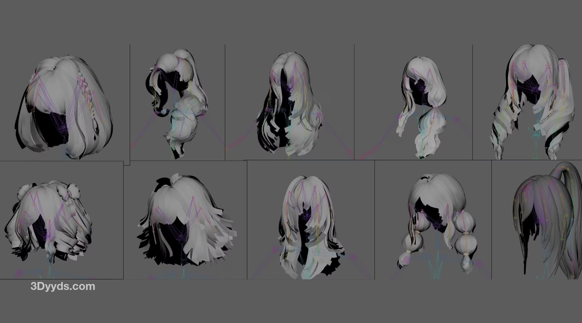 发型是在Maya中使用发丝制作的,不是造型系统。