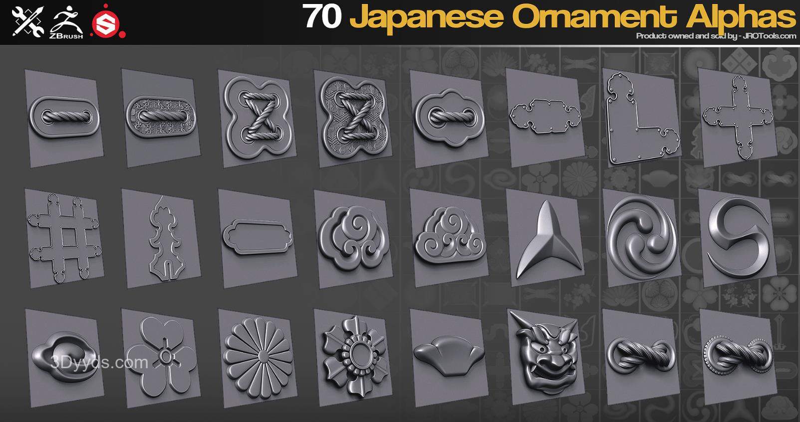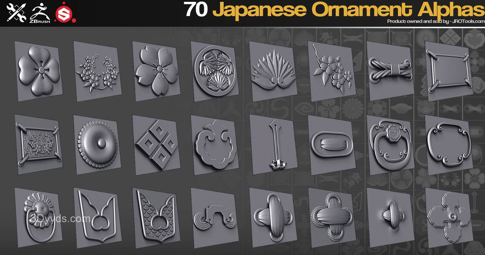 - ZBrush/SP - 70 个日式装饰图案的 alpha。