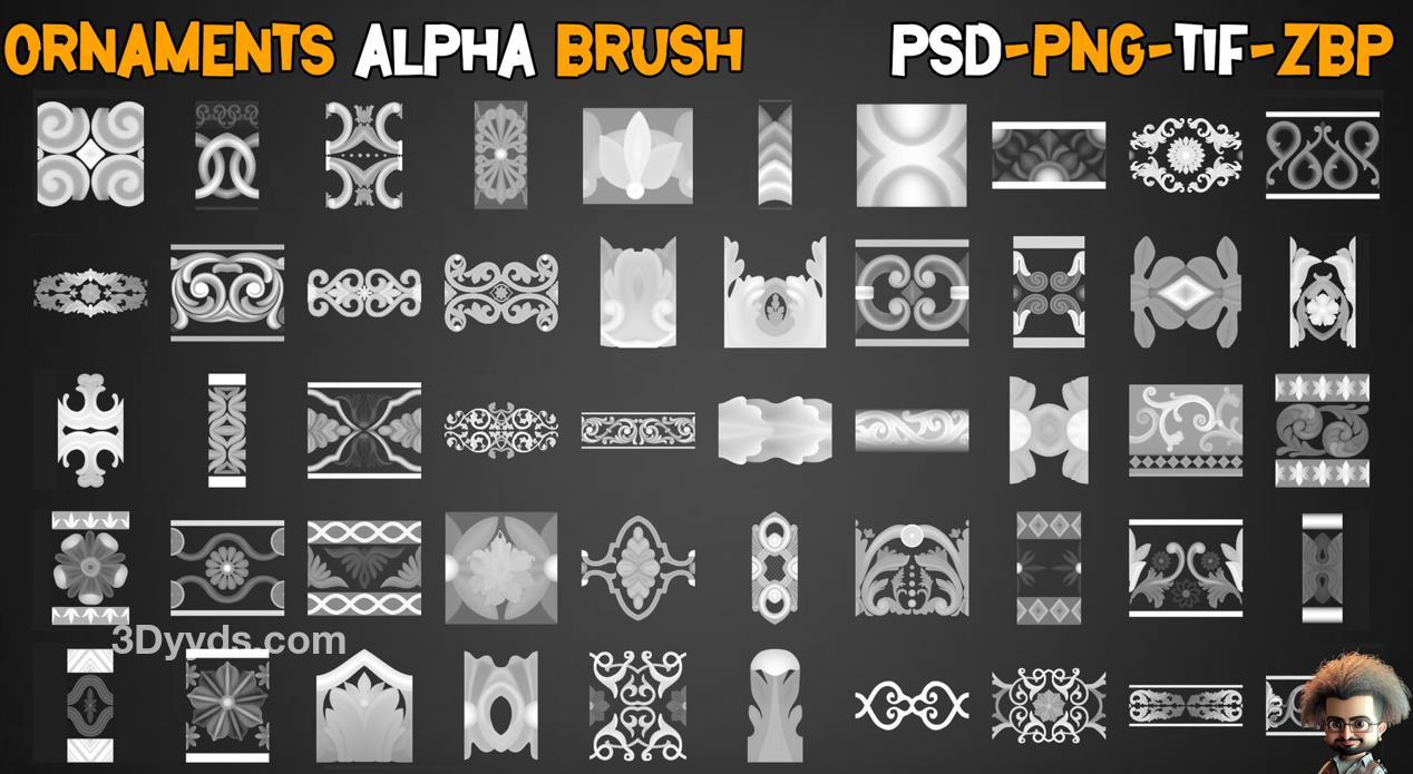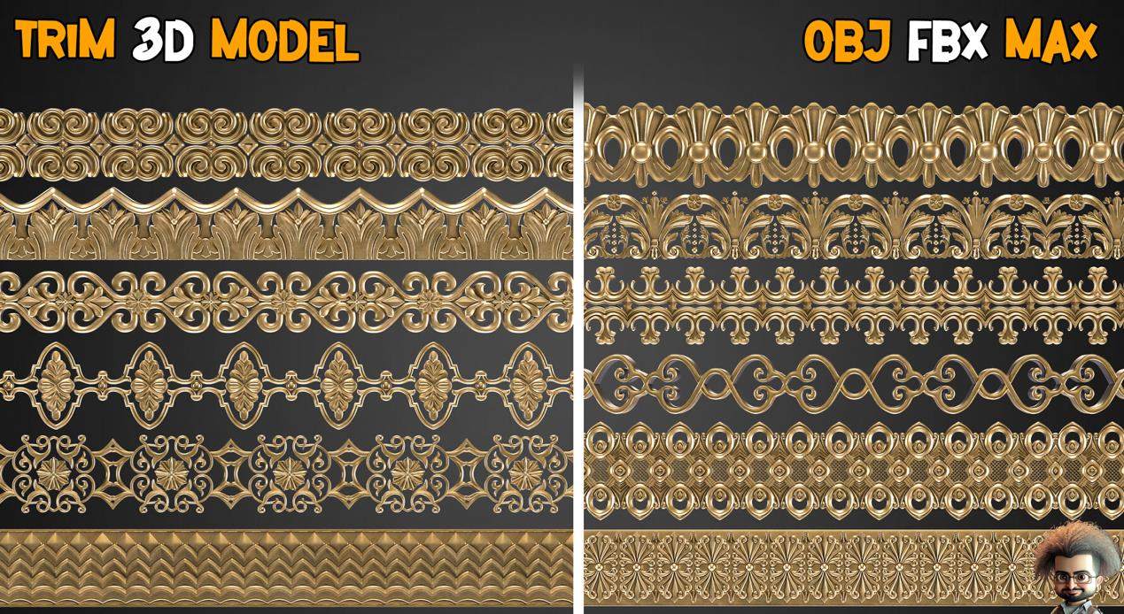 这是一套包含50个饰品镶边笔刷的套装。饰品建模是最具技术性和最具挑战性的建模之一,设计和制作这些模型非常耗时,而且创建饰品镶边在游戏和建筑行业中非常实用。我们尝试在这个套装中创建了一个巨大而优秀的收藏品,希望您能以最佳方式使用它。