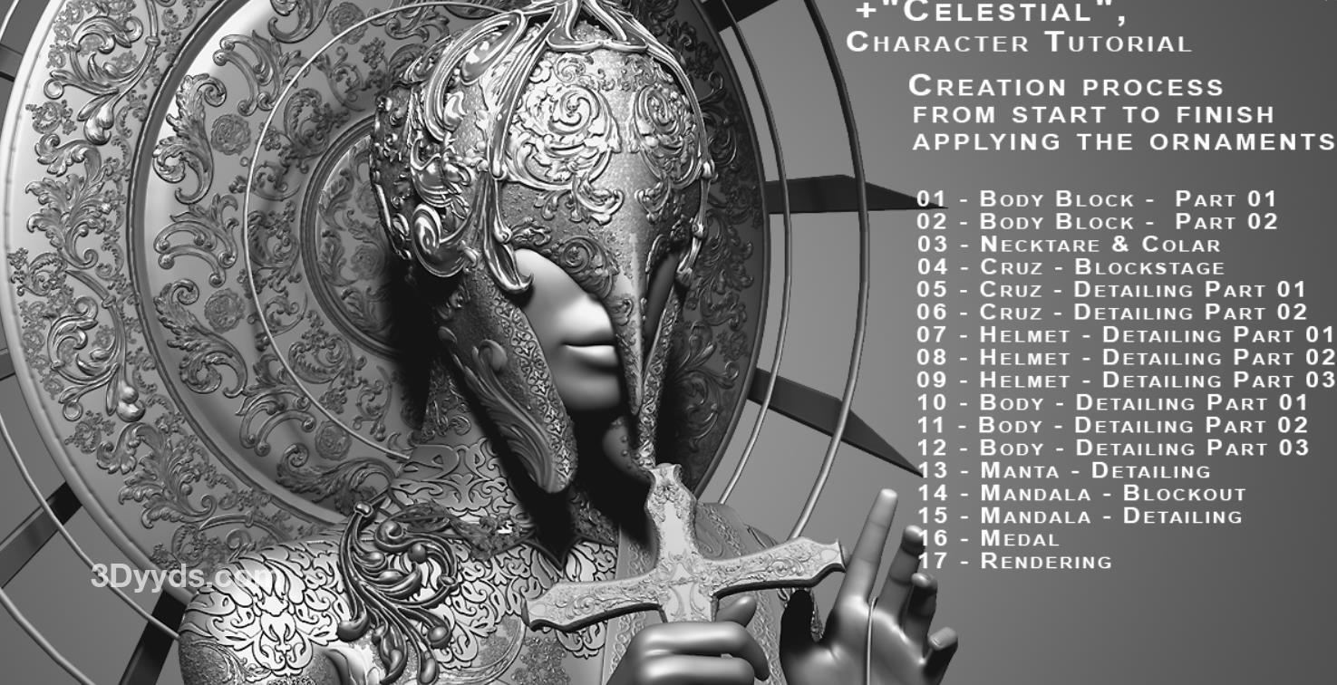 Celestial_Character_Tutorial_from 0_to_end(应用笔刷) 01 - 身体阶段 - 第01部分.mp4 02 - 身体阶段 - 第02部分.mp4 03 - 领结和领带.mp4 04 - 十字架 - 建模阶段.mp4 05 - 十字架 - 细节部分01.mp4 06 - 十字架 - 细节部分02.mp4 07 - 头盔 - 细节部分01.mp4 08 - 头盔 - 细节部分02.mp4 09 - 头盔 - 细节部分03.mp4 10 - 身体 - 细节部分01.mp4 11 - 身体 - 细节部分02.mp4 12 - 身体 - 细节部分03.mp4 13 - 斗篷 - 细节.mp4 14 - 曼陀罗 - 建模15 - 曼陀罗 - 细节.mp4 16 - 勋章.mp4 17 - 渲染.mp4
