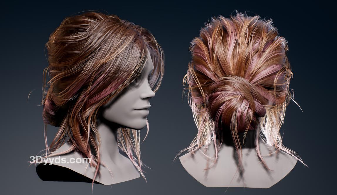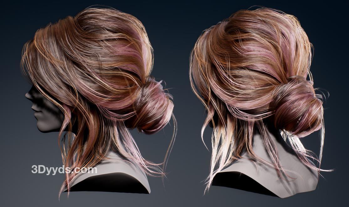 - 圆髻发型分层网格fbx。