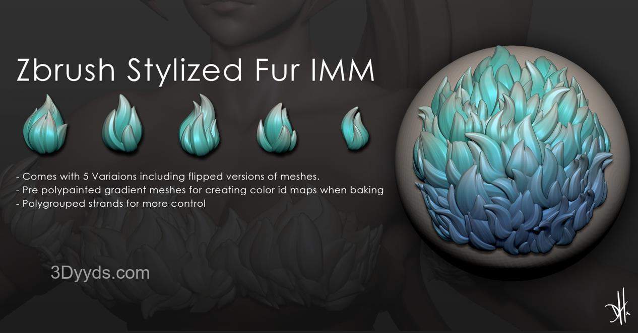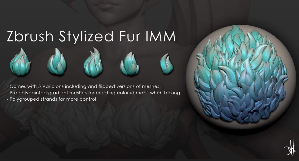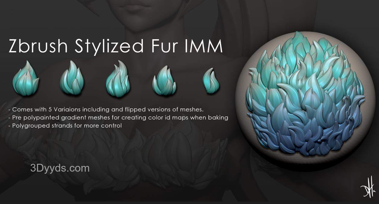 风格化毛皮 IMM 刷子使您能够更轻松地快速填充表面,使其拥有酷炫的风格化头发!