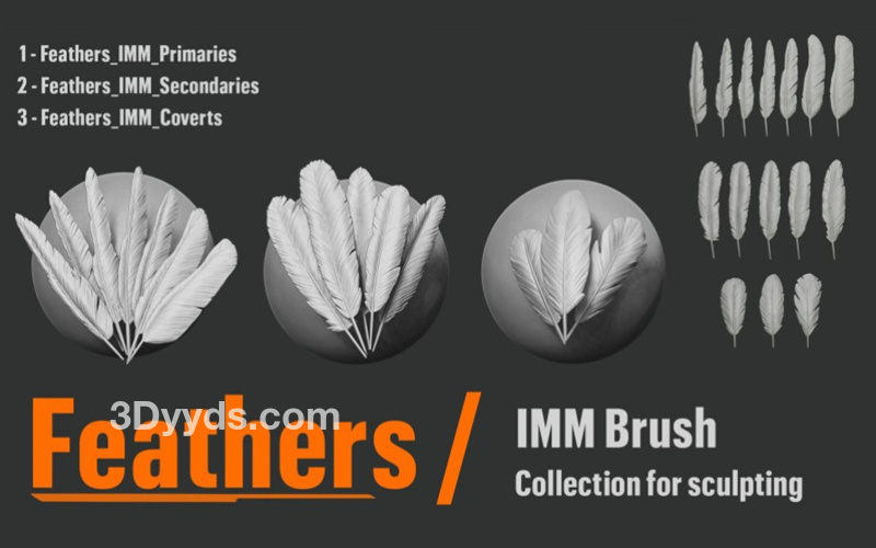 zbrush毛发08禽类鸟类羽毛IMM笔刷&雕刻翅膀ZBP