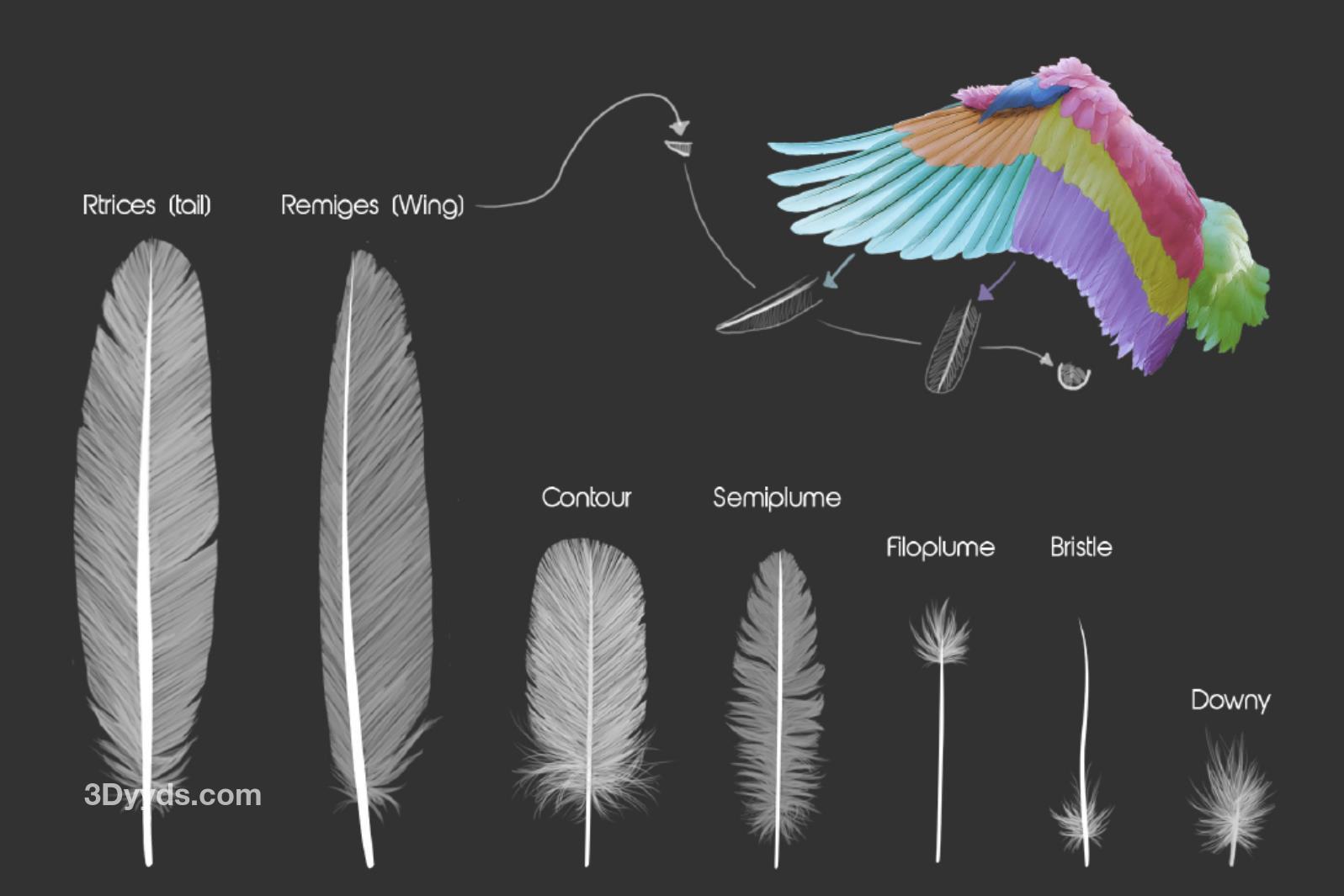 zbrush毛发09禽类小鸟类羽毛笔刷&毛发翅膀雕刻老鹰