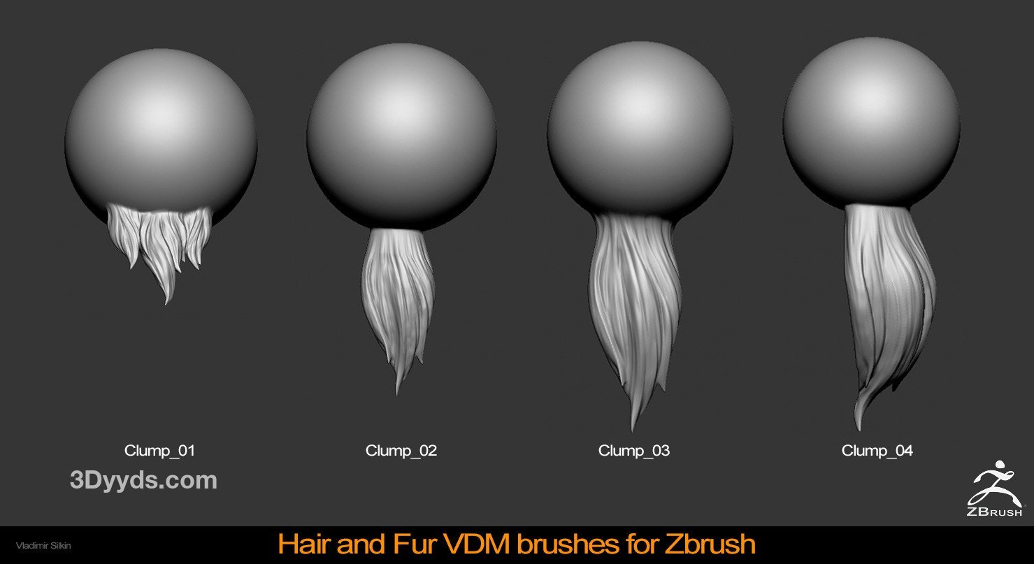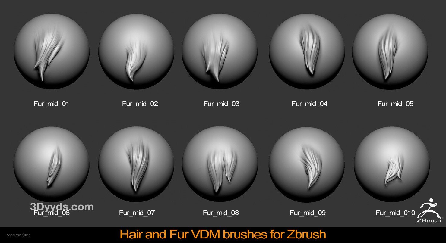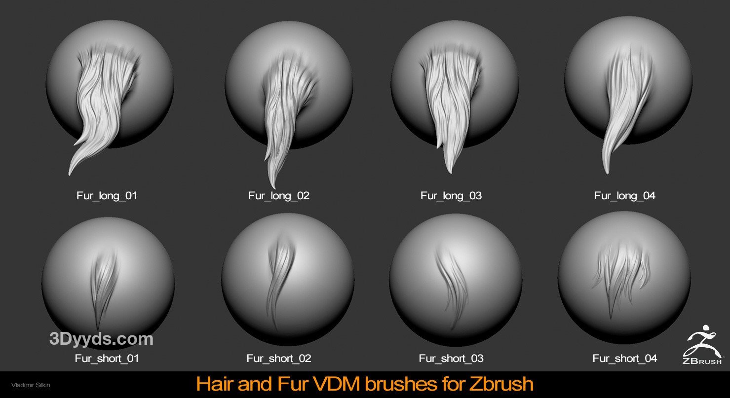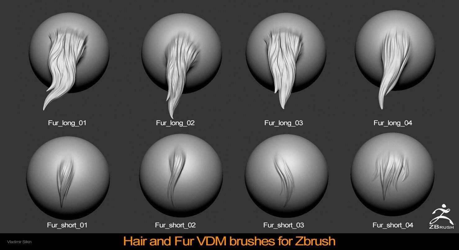这些适用于ZBrush的VDM笔刷可以用于在任何类型的角色、生物或动物上雕刻头发和毛发。