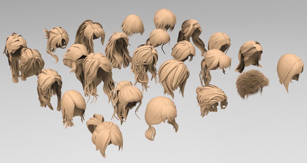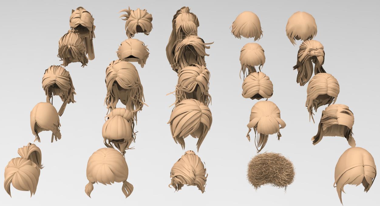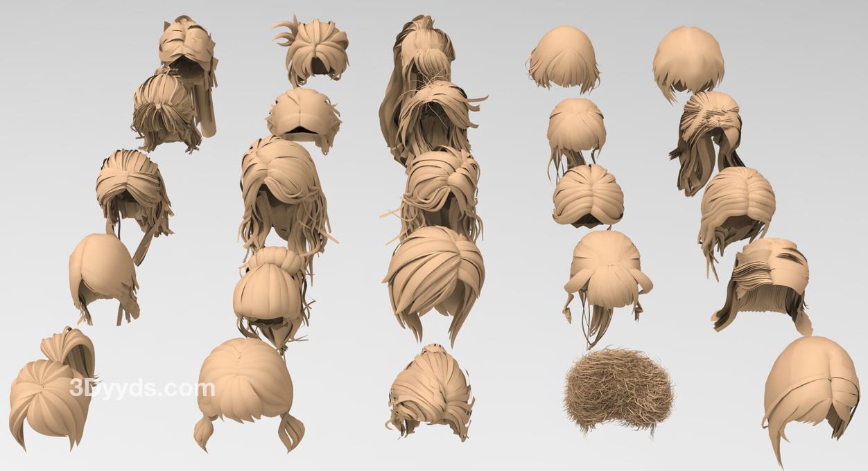 25种不同的女性基础网格头发模型,加快您的工作速度!!!