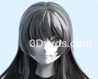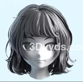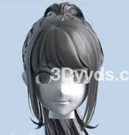 3D动漫卡通女孩头发毛发双马尾长发模型