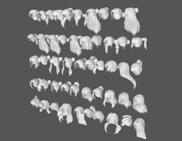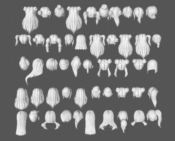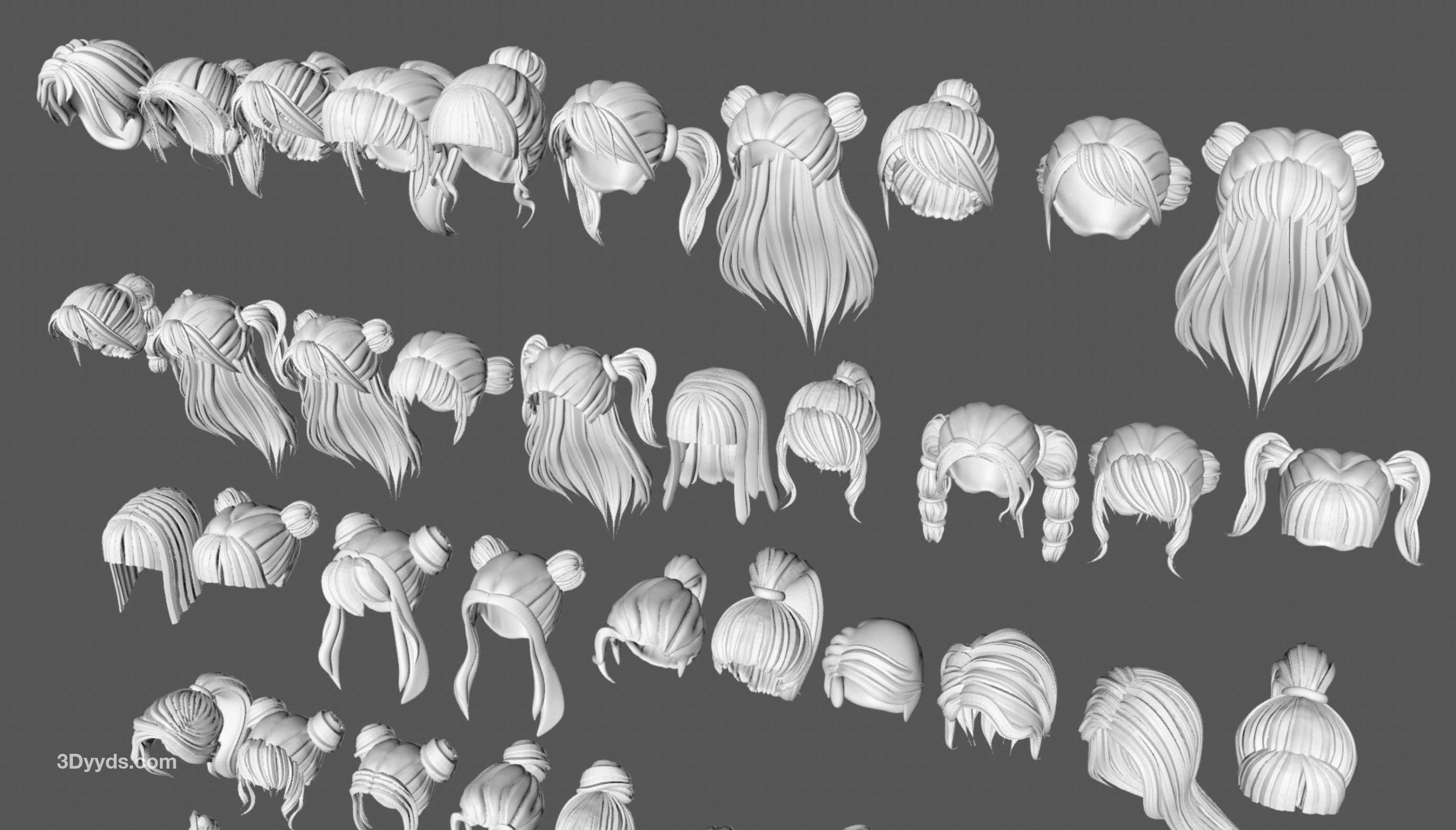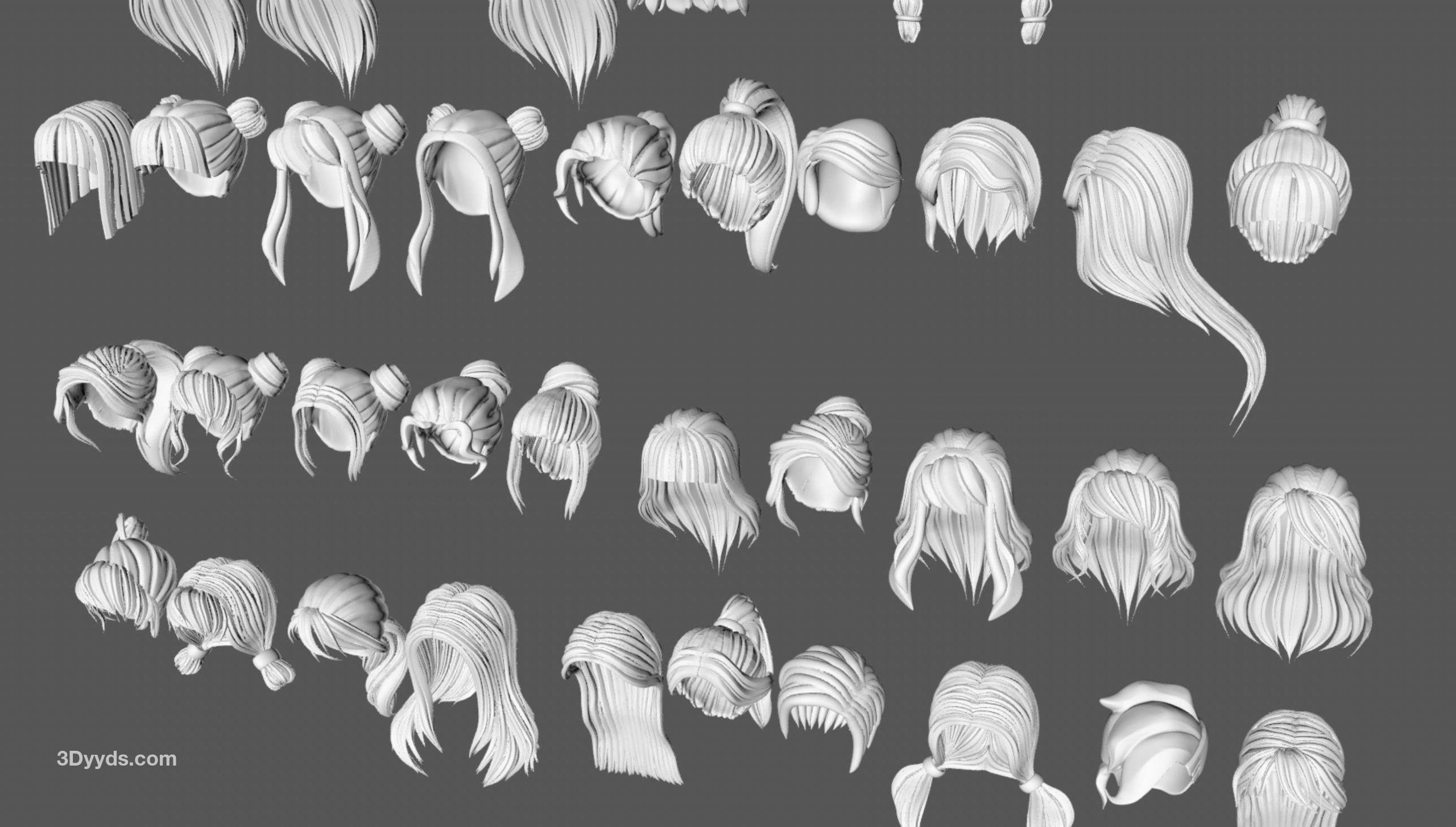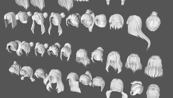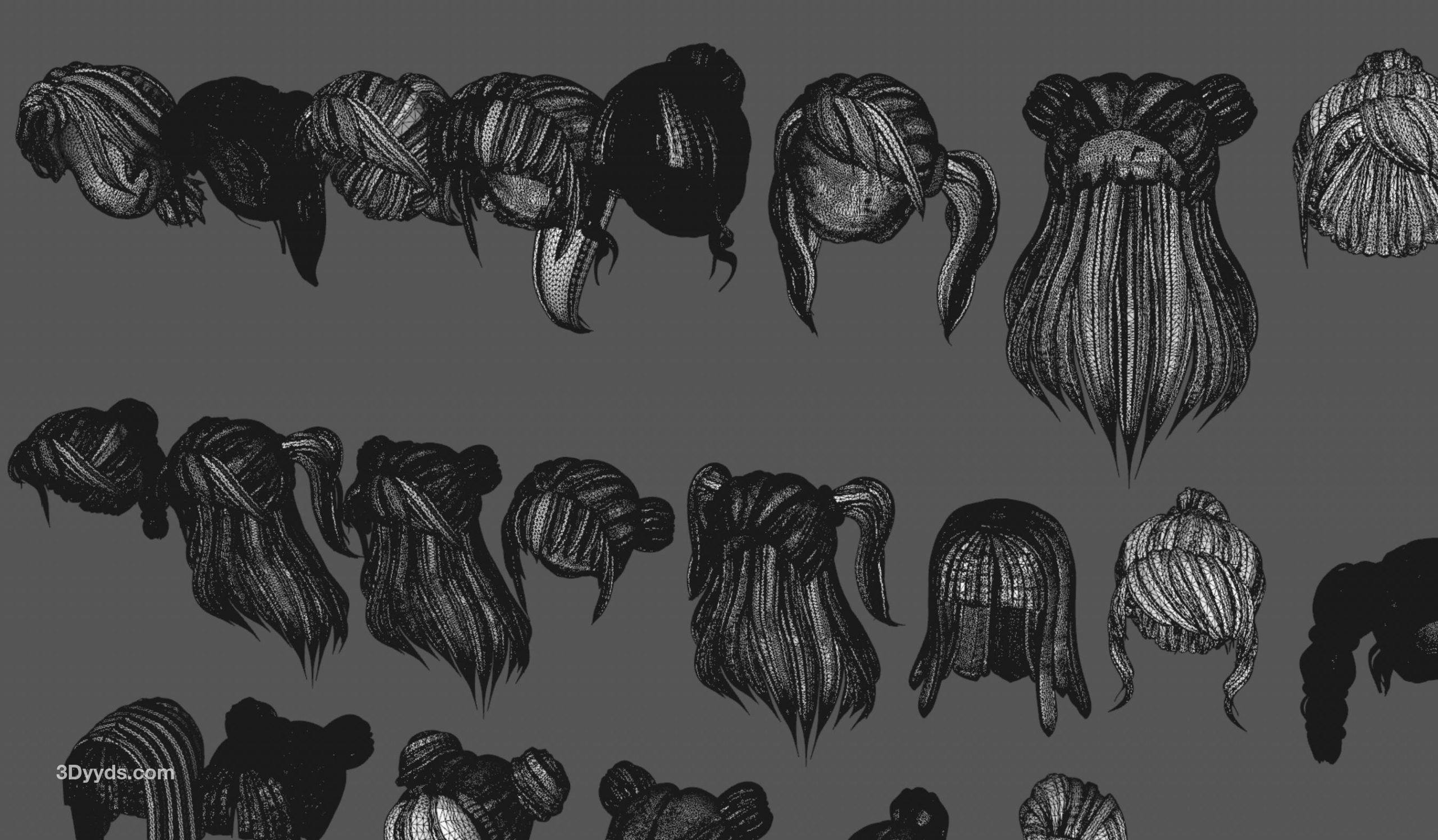 50款女士女孩女性卡通3D打印头发毛发模型