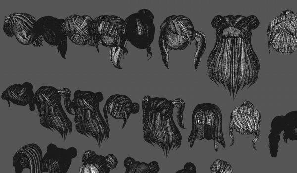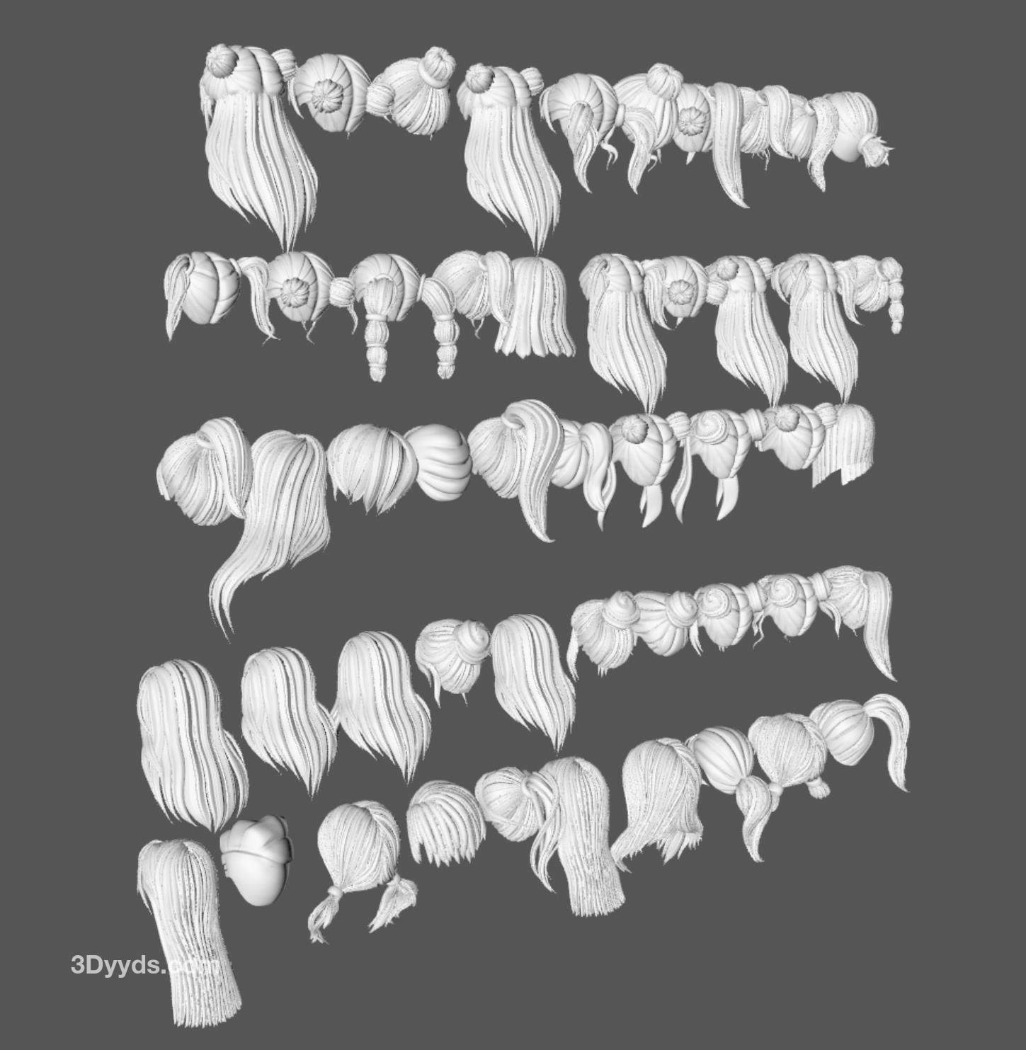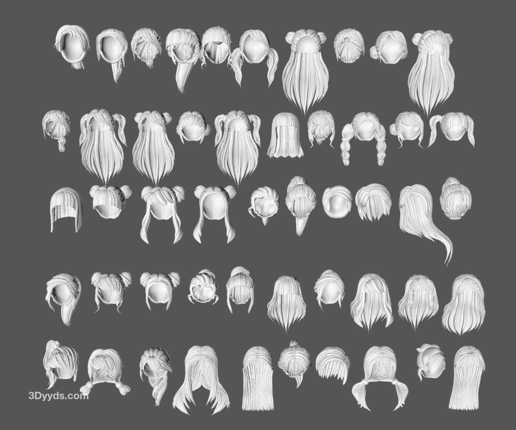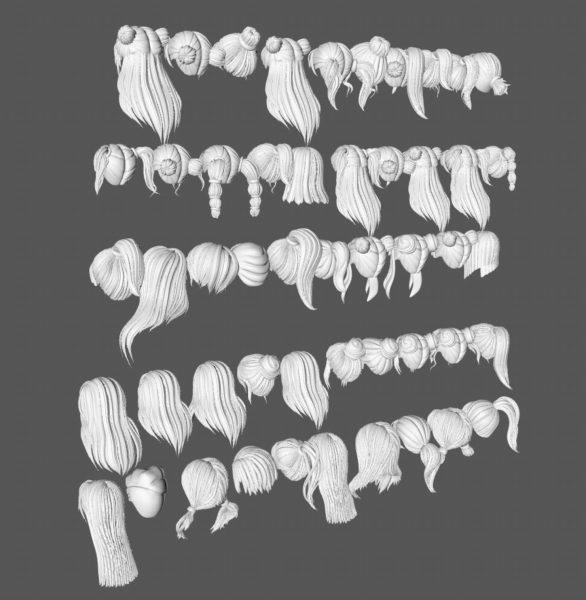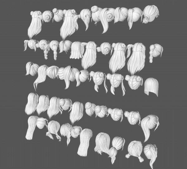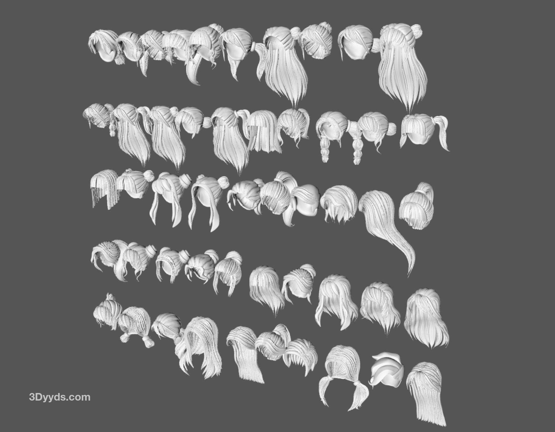 50款女士女孩女性卡通3D打印头发毛发模型