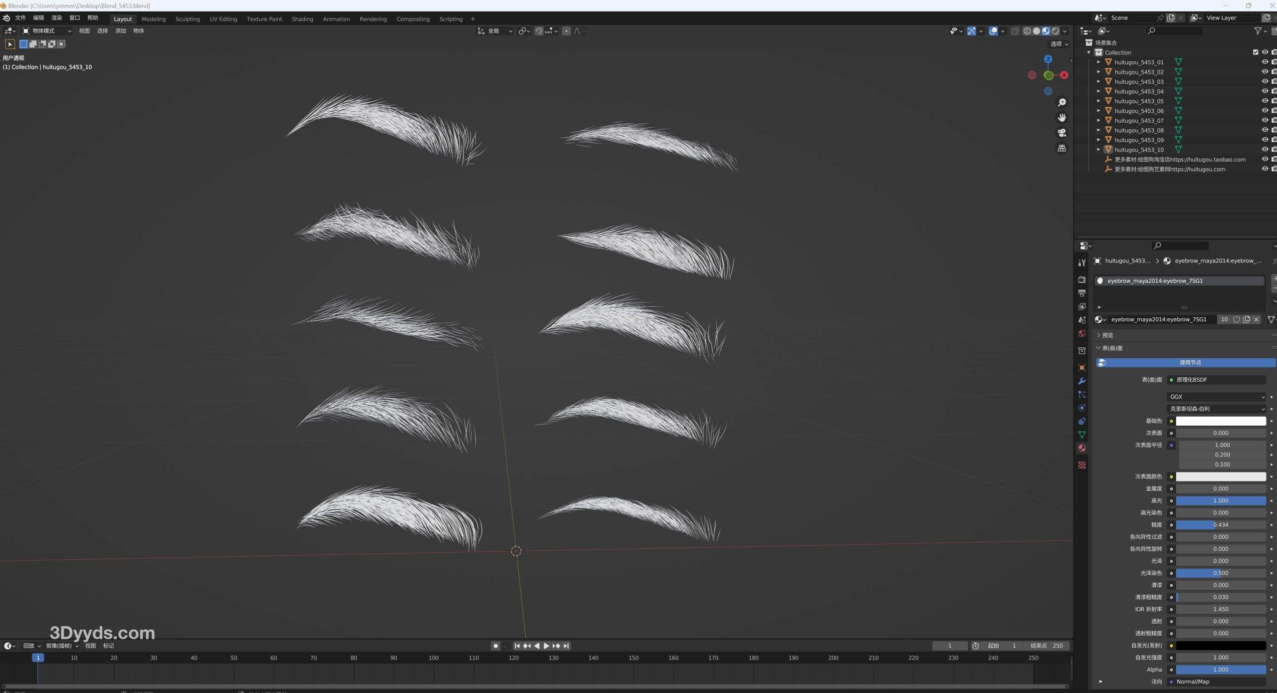 10款眉毛3D模型高模实体毛发