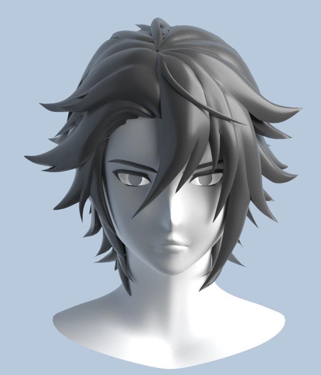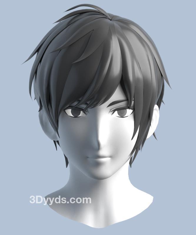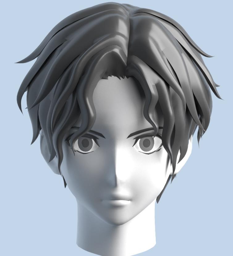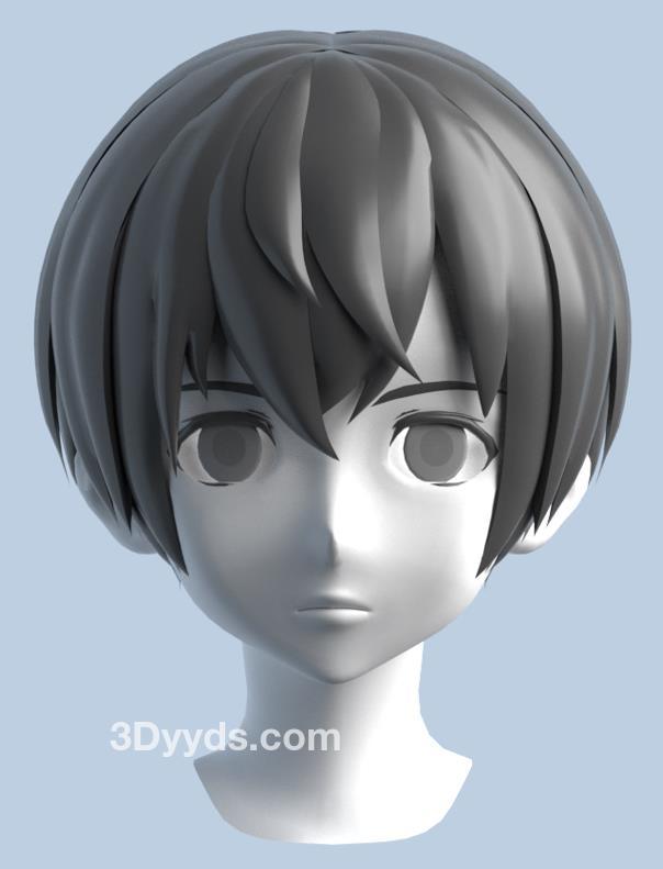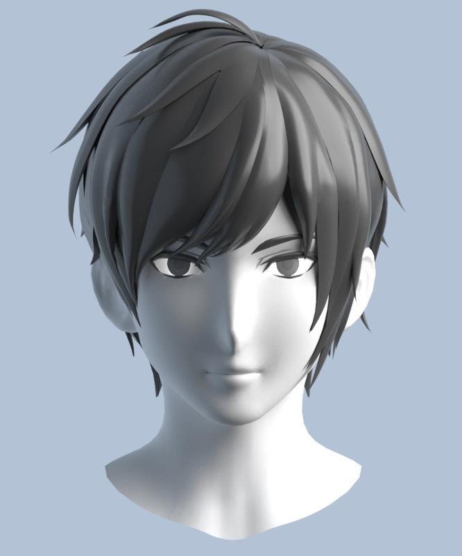 卡通二次元Q版男性高模角色头部模型
