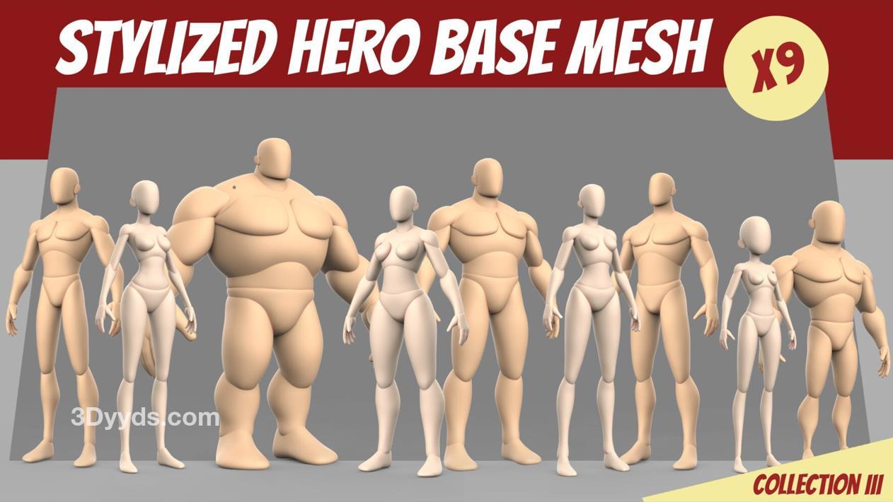zbrush风格化英雄人物模型amp卡通动漫角色雕刻男人女人