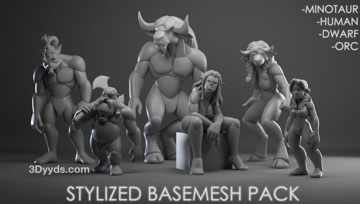 zbrush风格化牛头人兽人野兽怪物基础身体模型OBJ白模