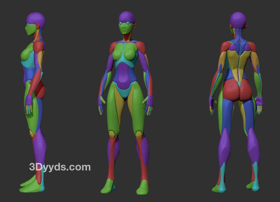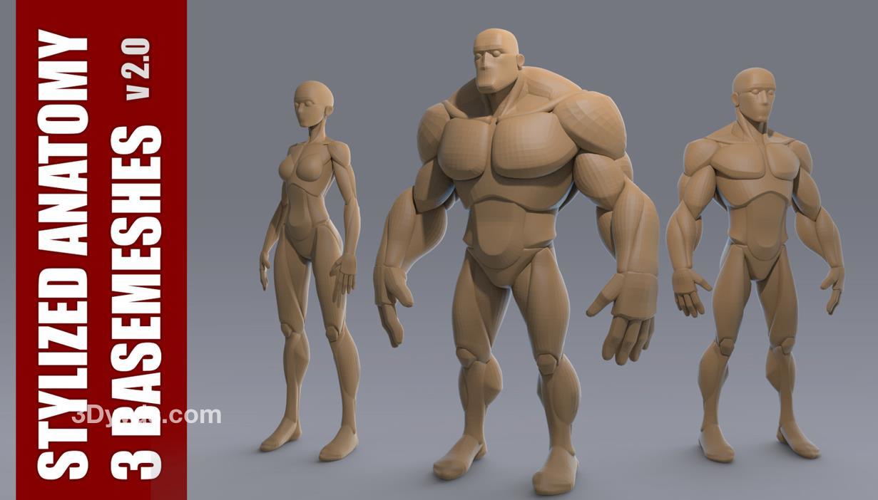 zbrush卡通风格化男女壮汉基础模型amp人体卡通小孩角色雕刻