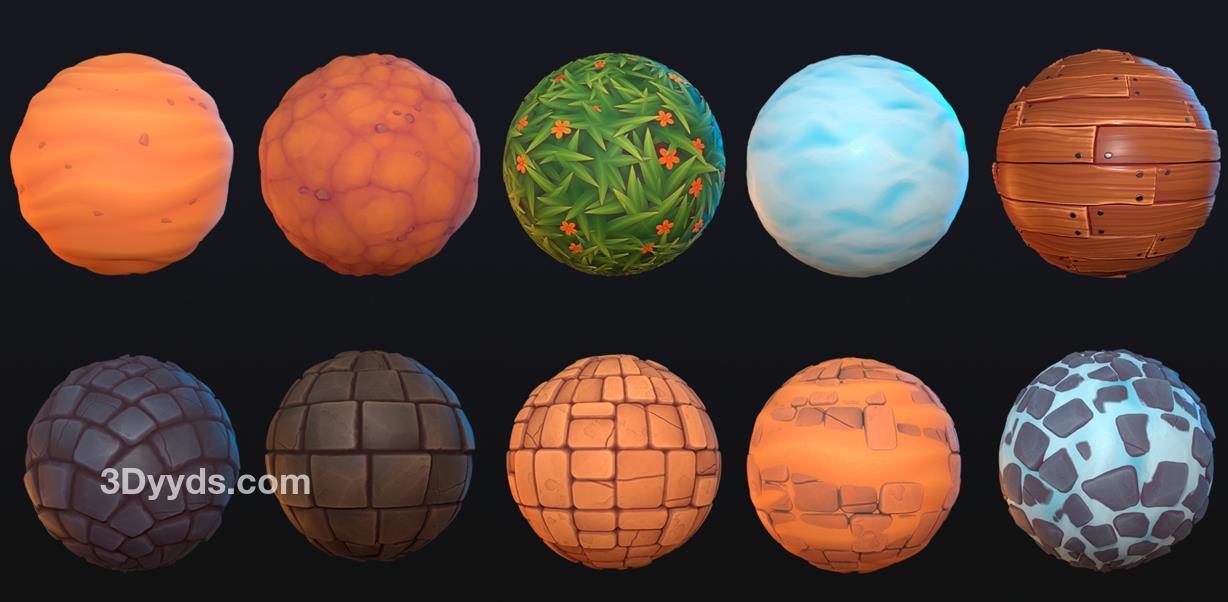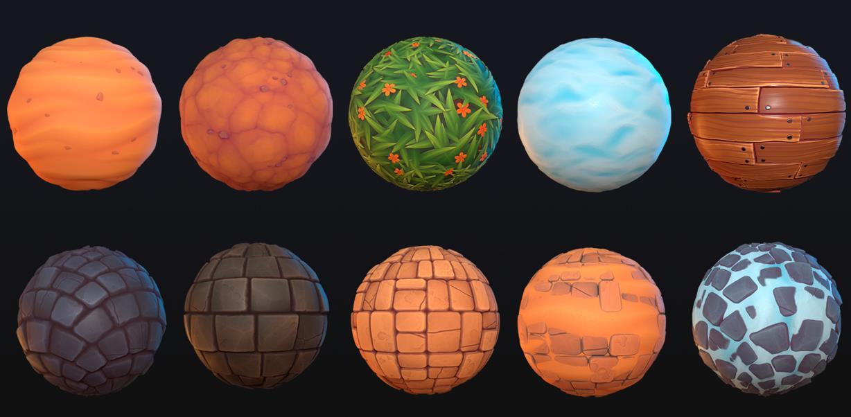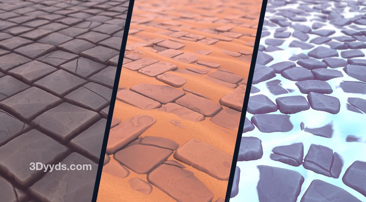 - 我们将创建三种鹅卵石材质。