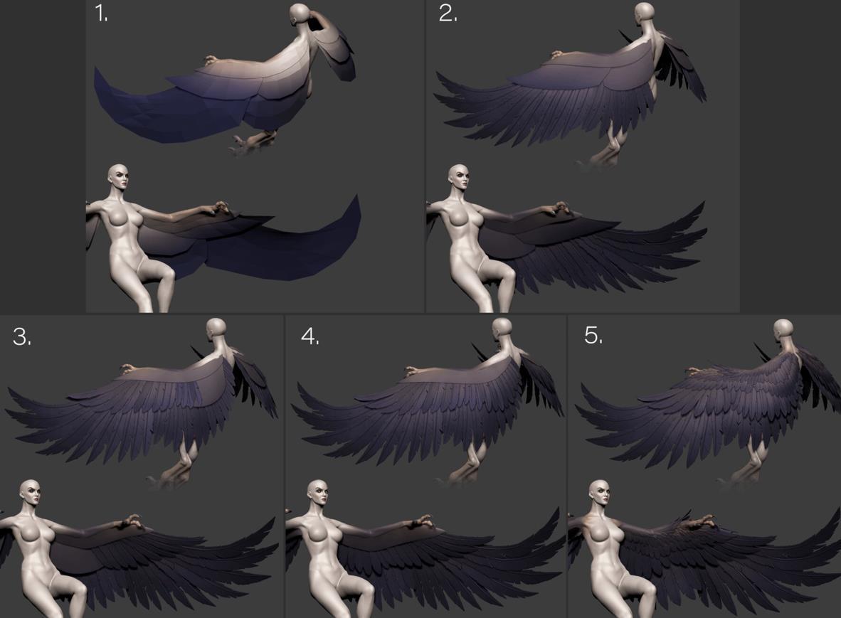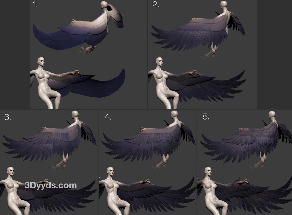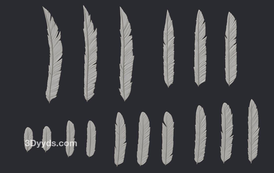 zbrush毛发19风格化羽毛翅膀雕刻ZTL模型笔刷&老鹰飞行羽翼
