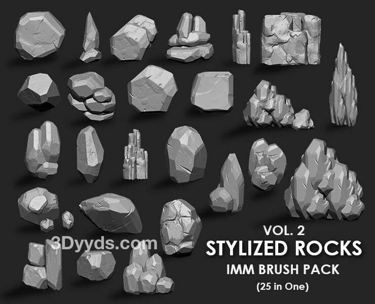 这是一个25合一的风格化岩石 IMM 刷子包第二卷。您可以在任何类型的风格化环境中使用这些刷子。