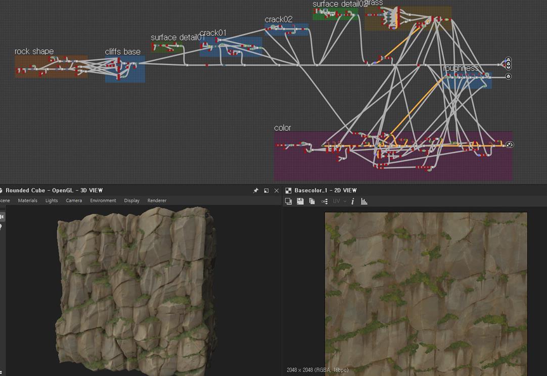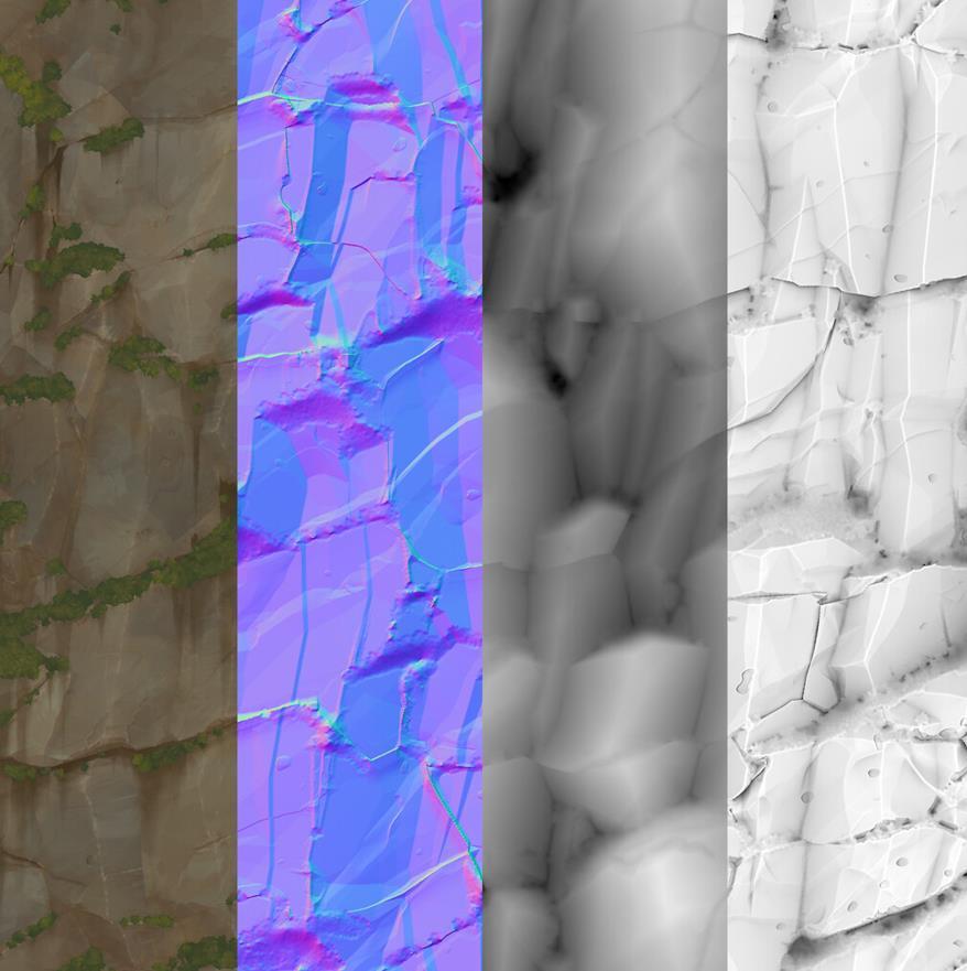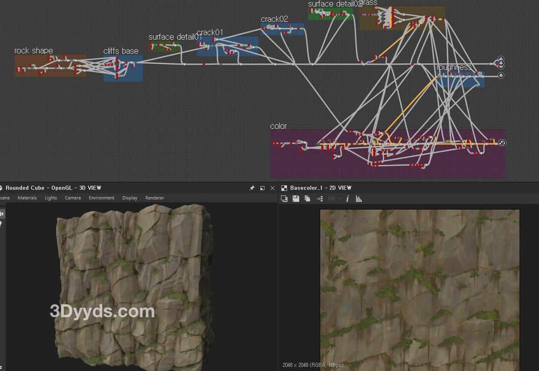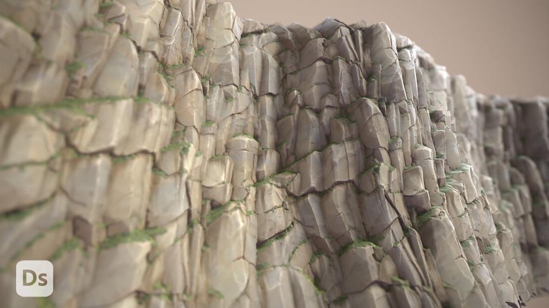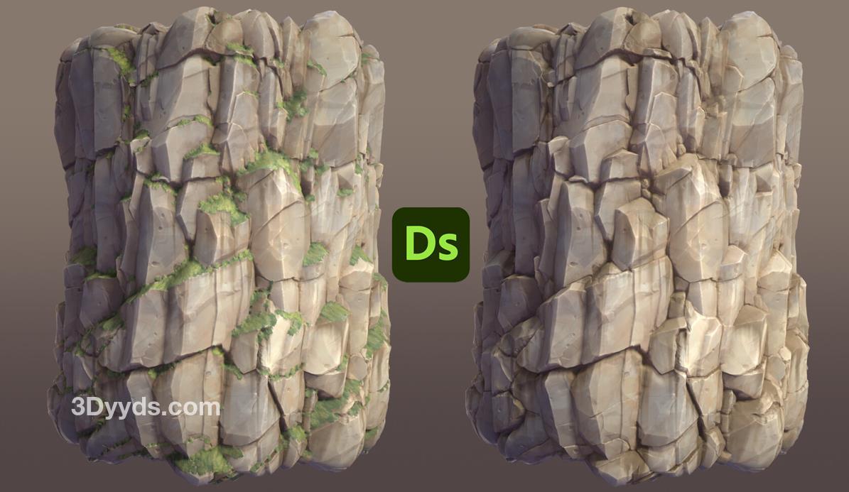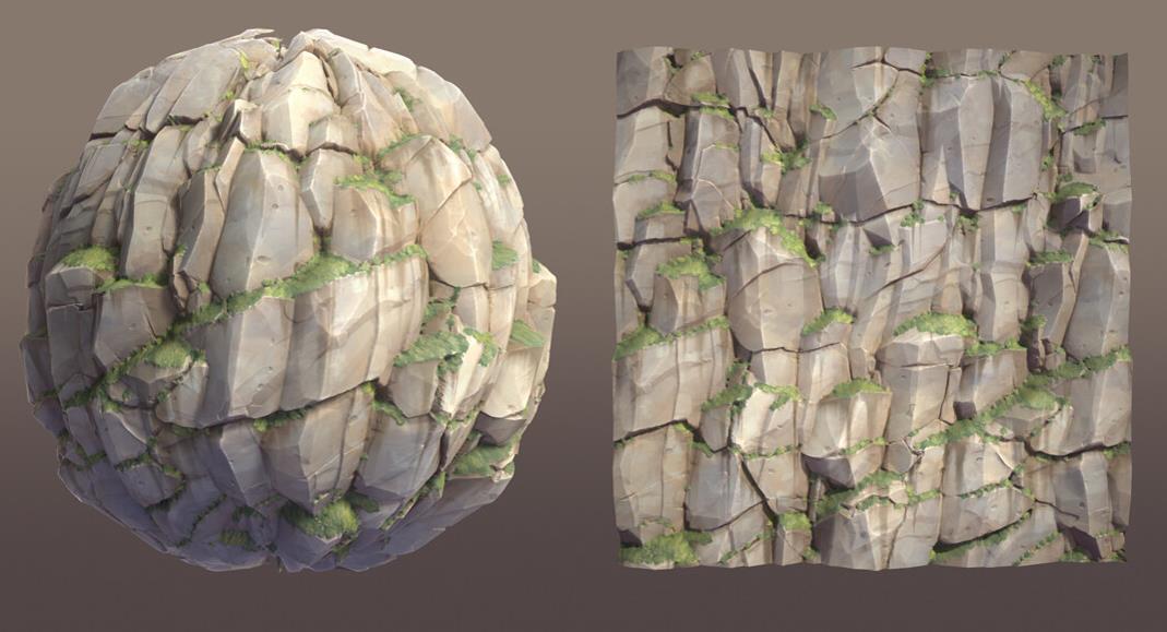 sd材质04卡通风格化岩石悬崖纹理材质球&青苔破碎石头