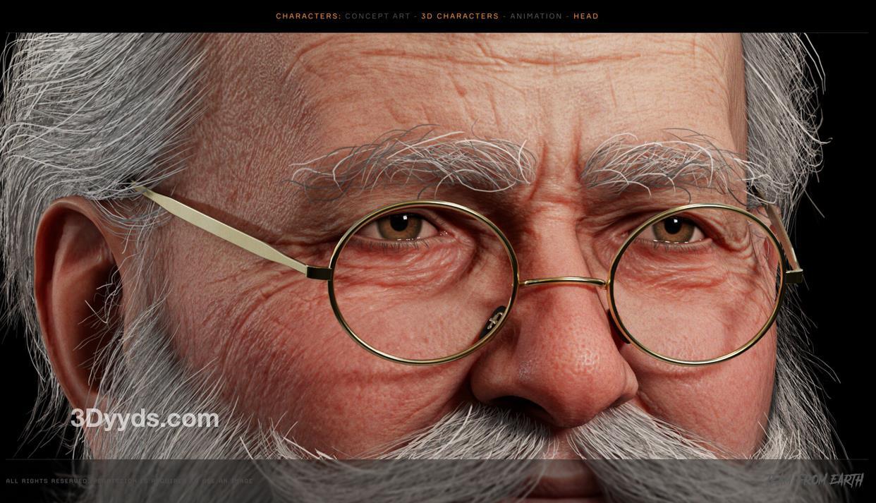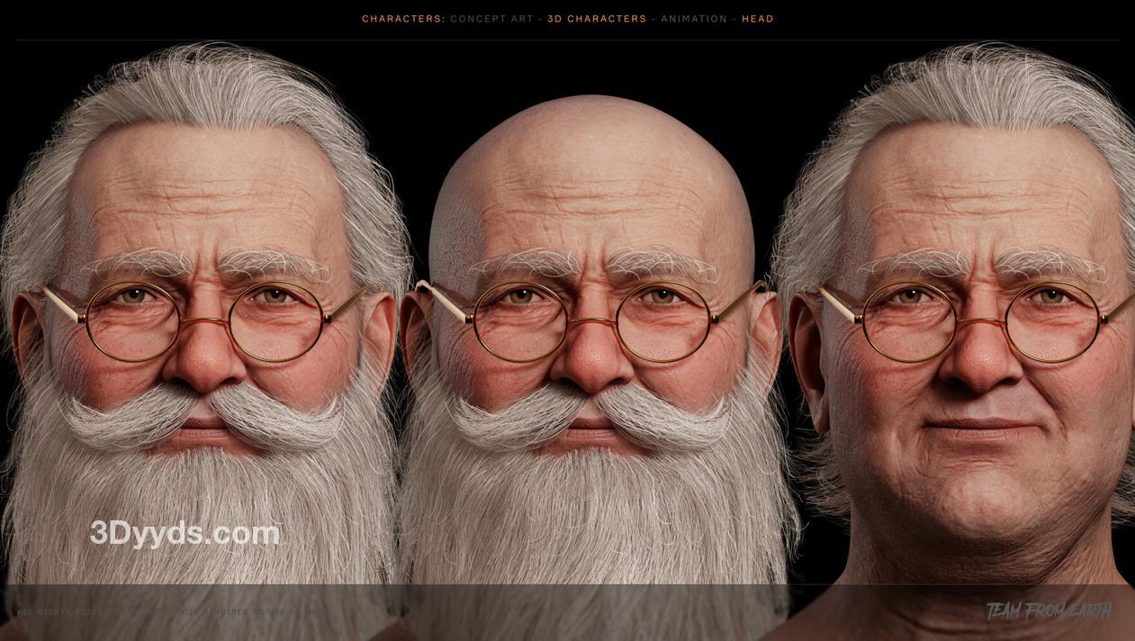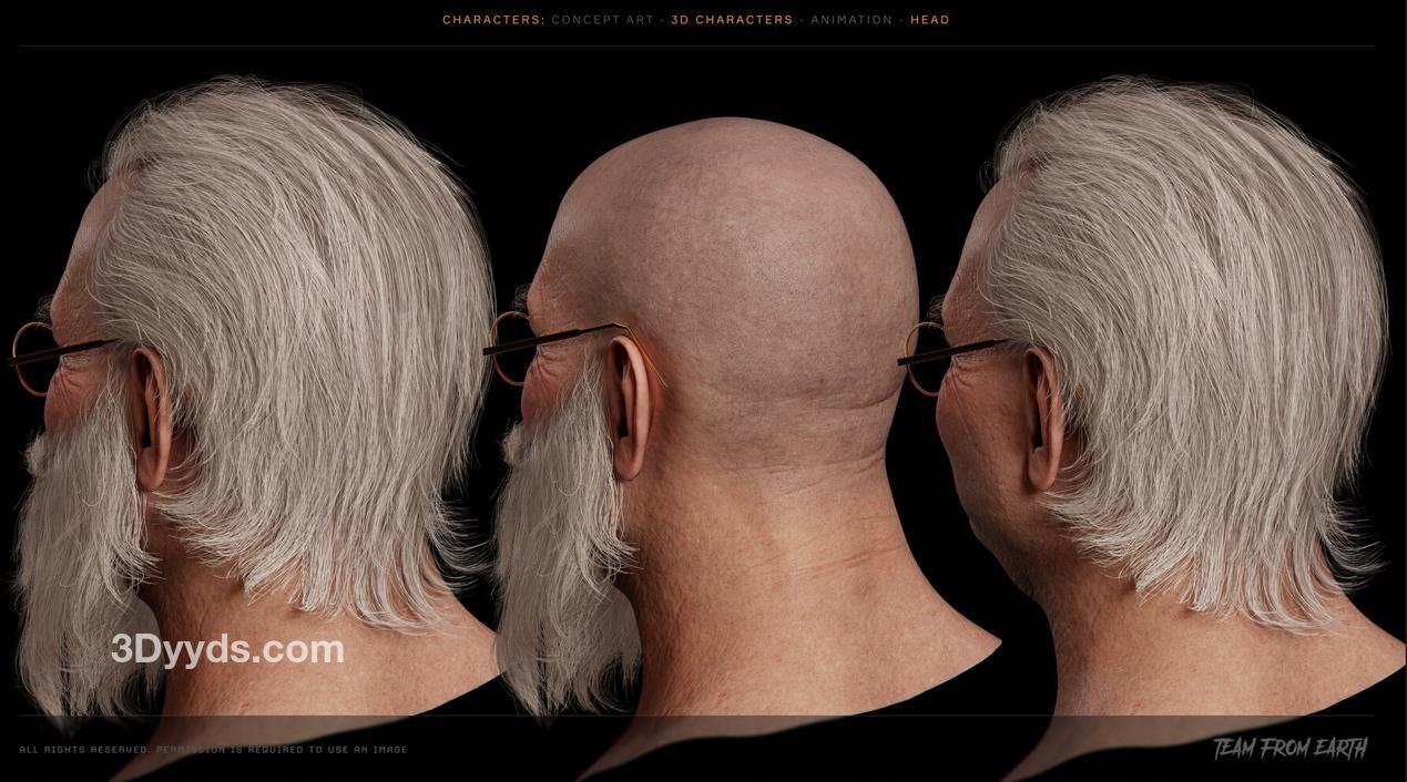 maya写实老人头部3D模型FBX白模MA头像模型素材源文件