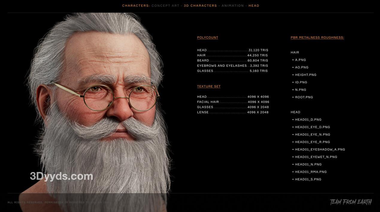 肖像是原创的,不基于任何特定的人物或概念。是一位老年人,祖父的形象。
