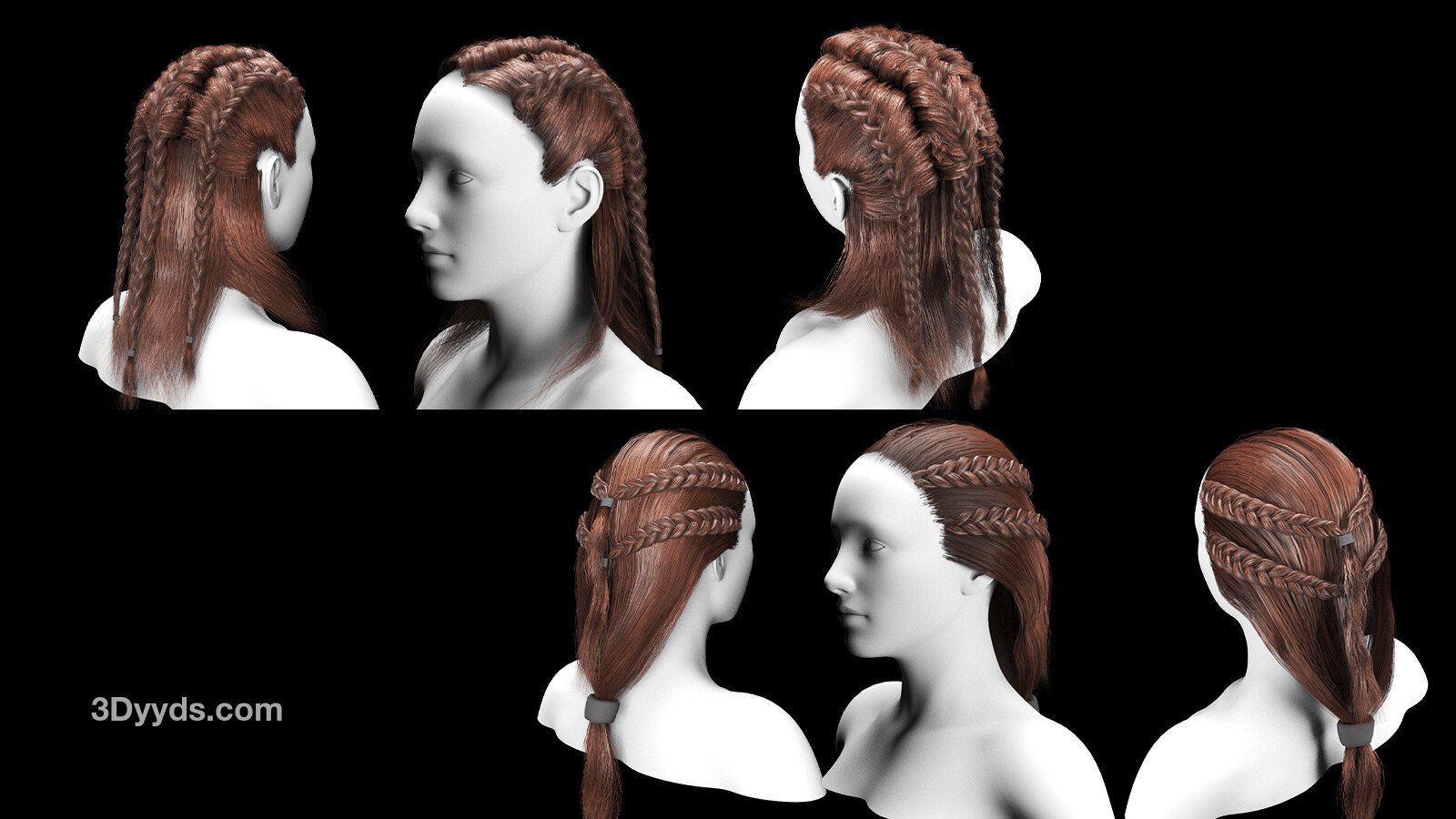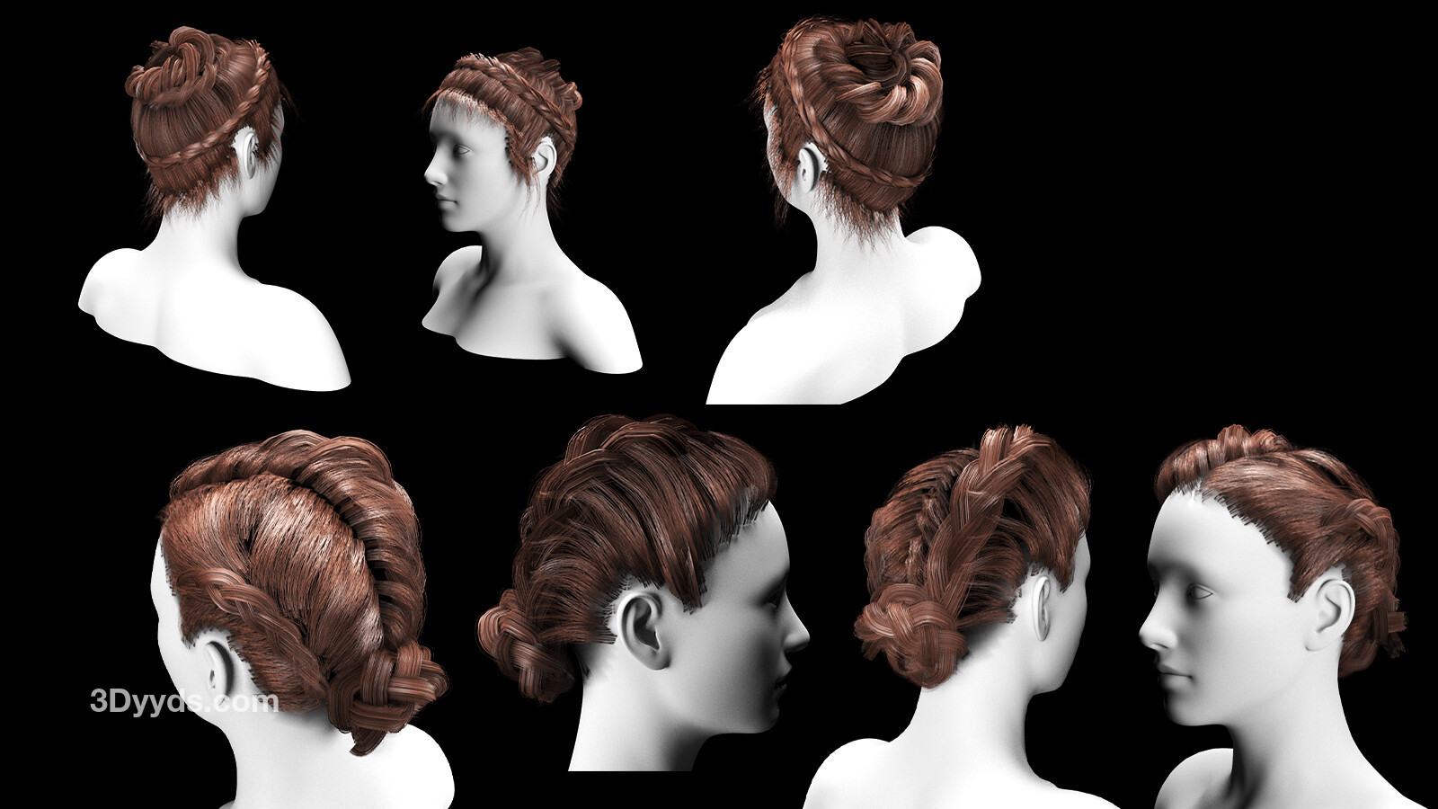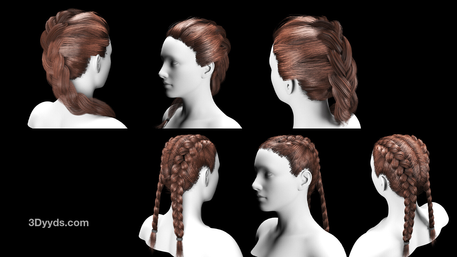 女性双马尾头发辫子模型max欧美女人发型毛发