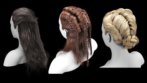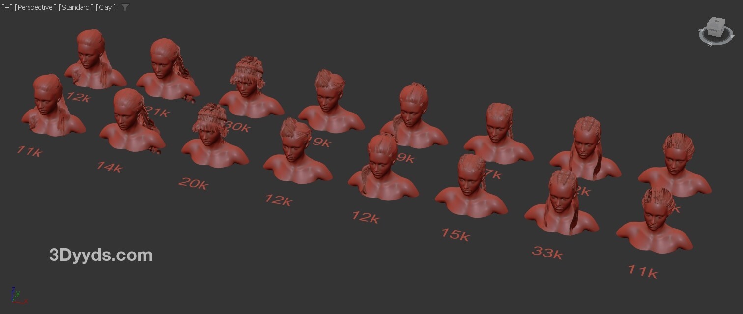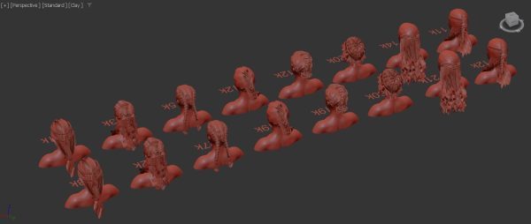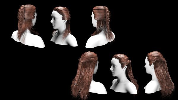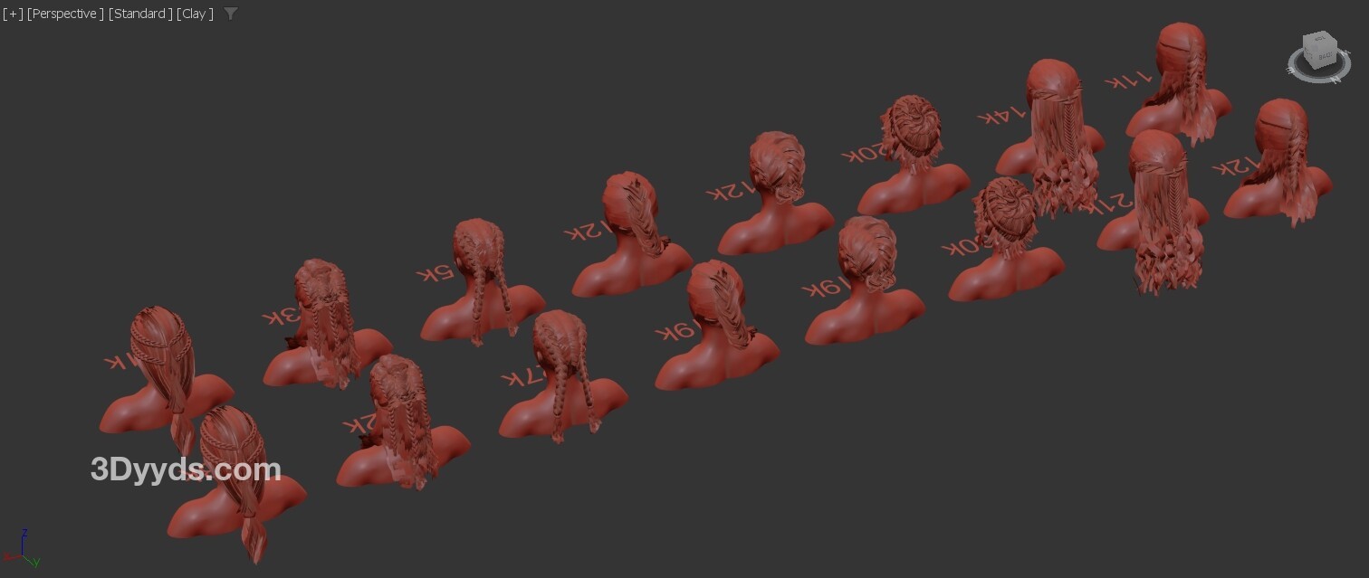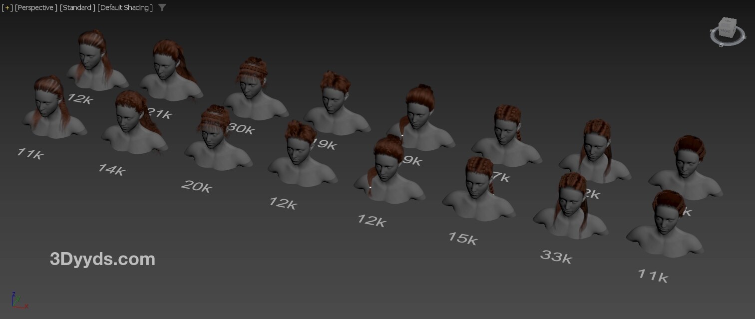 女性双马尾头发辫子模型max欧美女人发型毛发