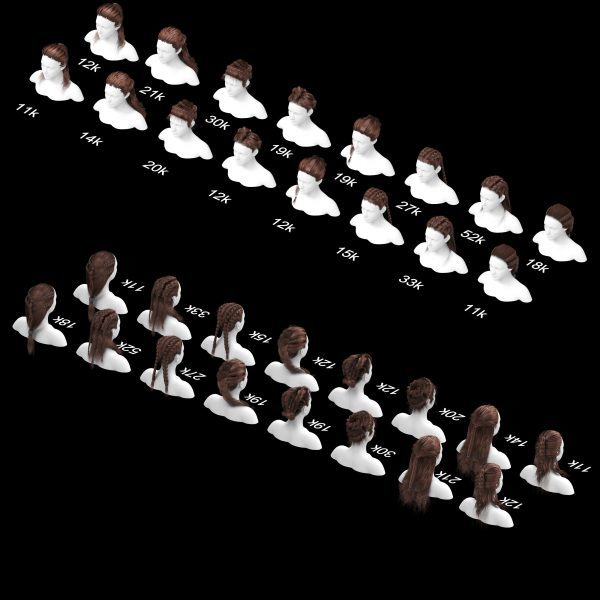 低多边形游戏就绪发卡包包括 8 种女性头发/发型,可随时插入到您的项目中。