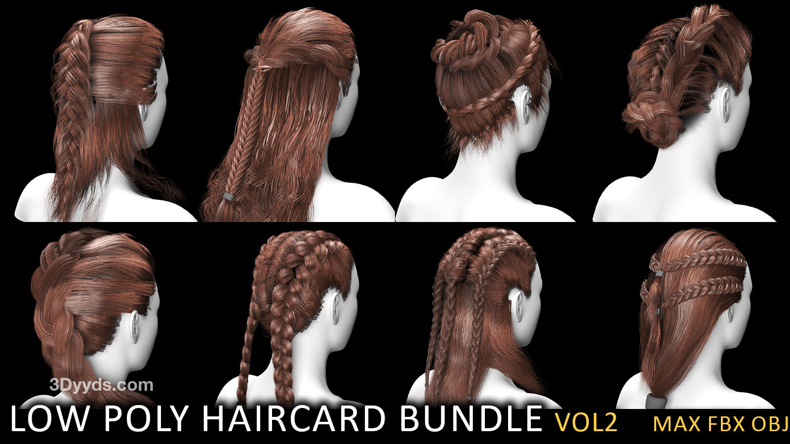 8 张低多边形游戏专用发片模型,三种颜色可选