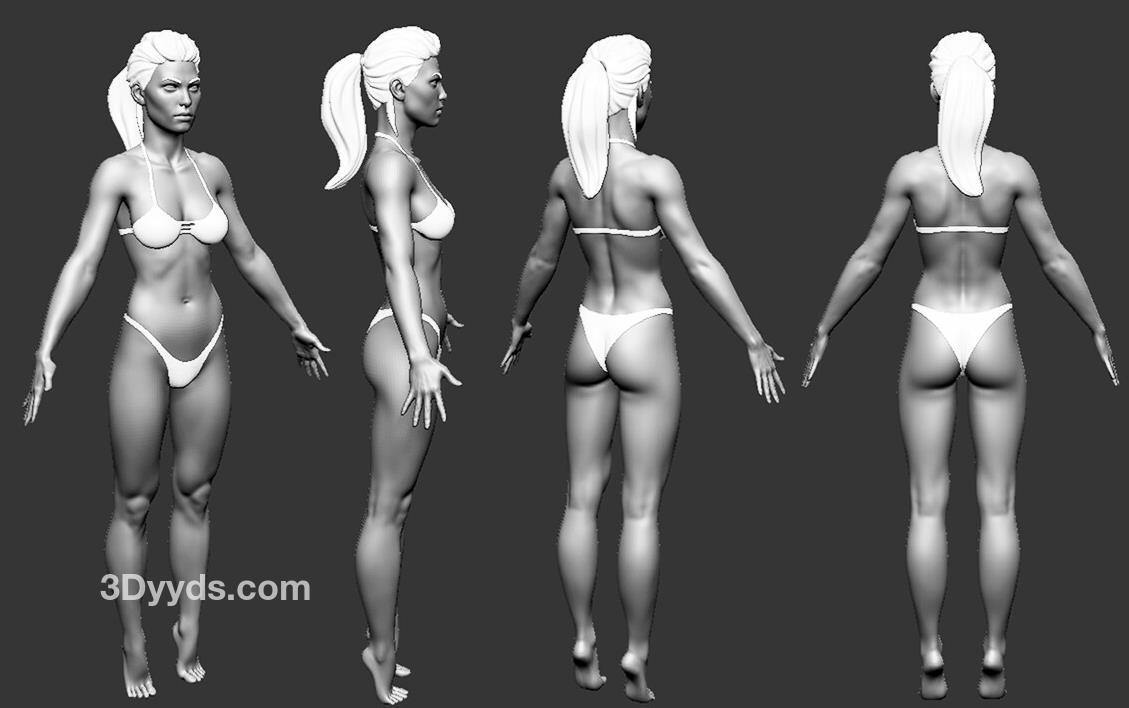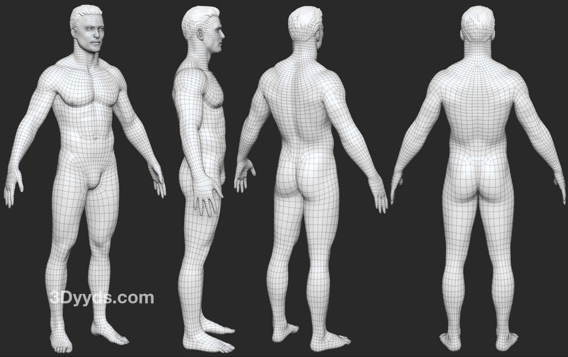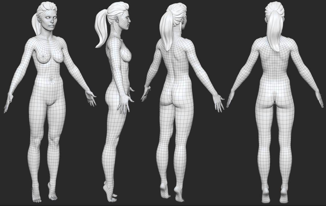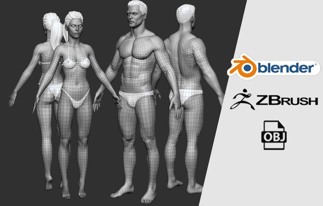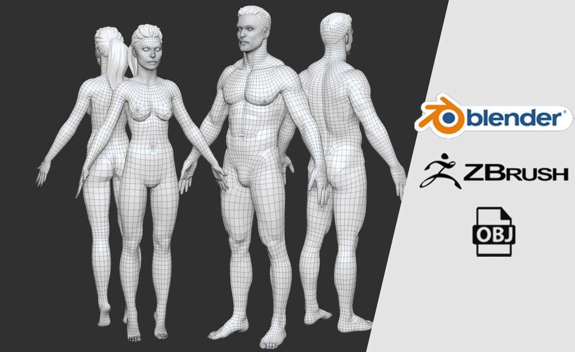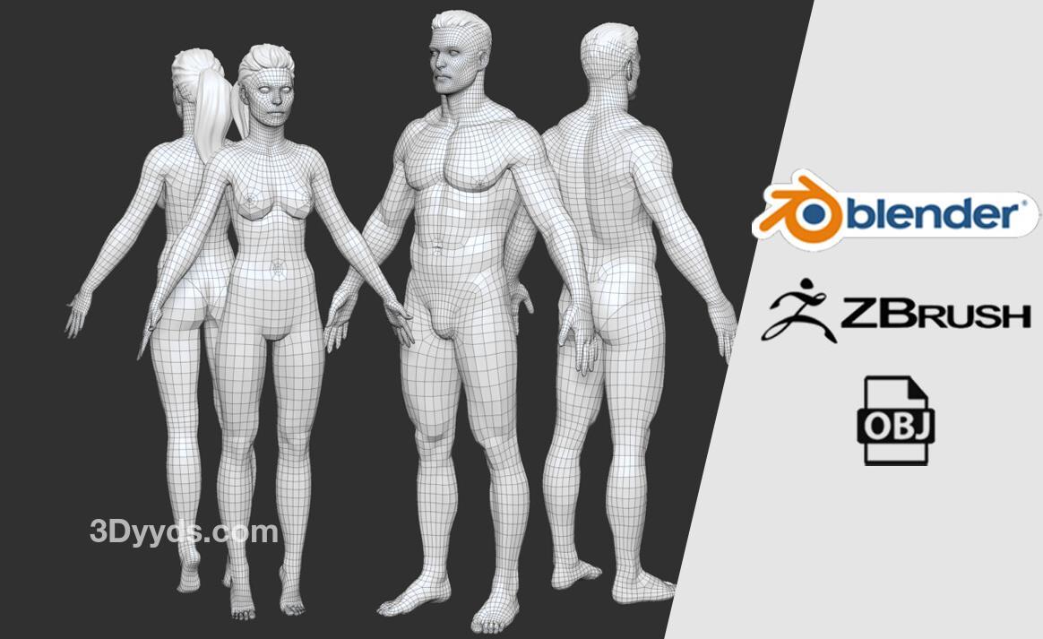 zbrush男女人体标准布线动画设计模型Blender男性美女角色动画ZTL