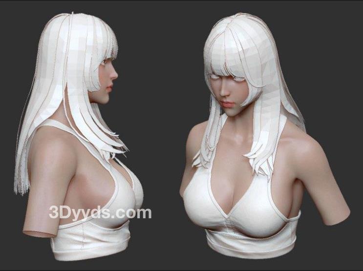 zb模型-卡通小姐姐头像雕刻模型带细分&女头角色头雕