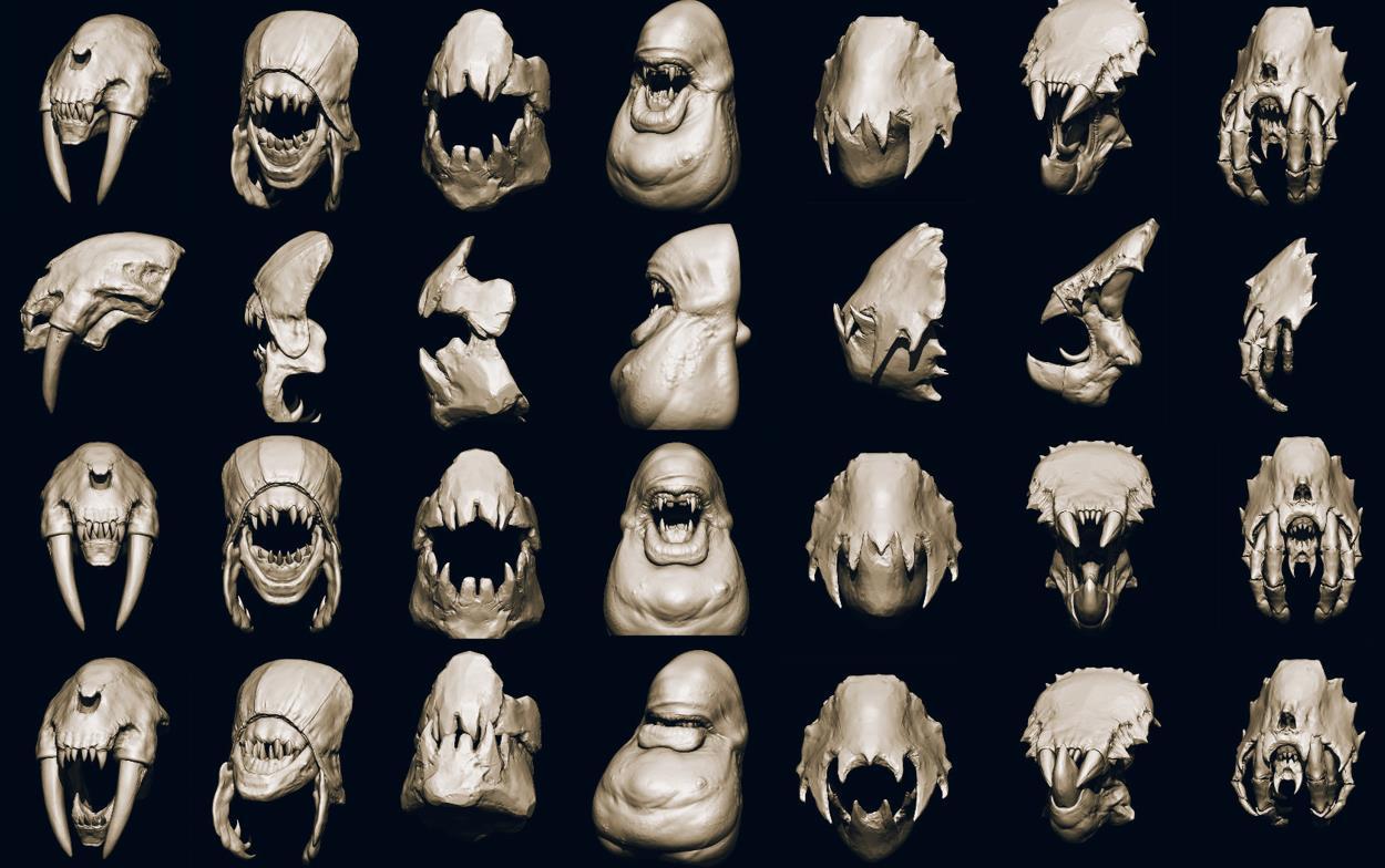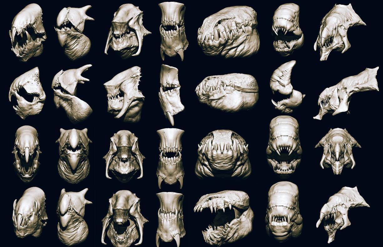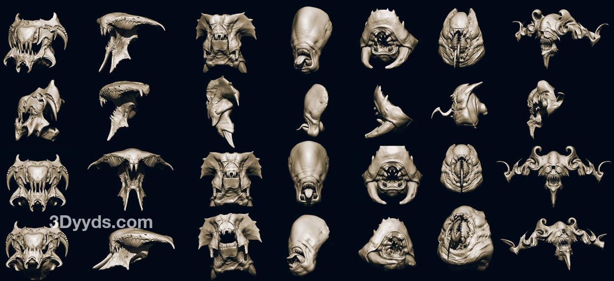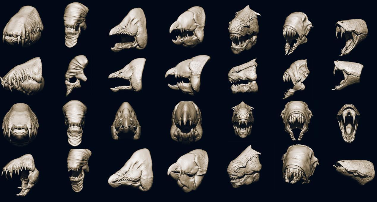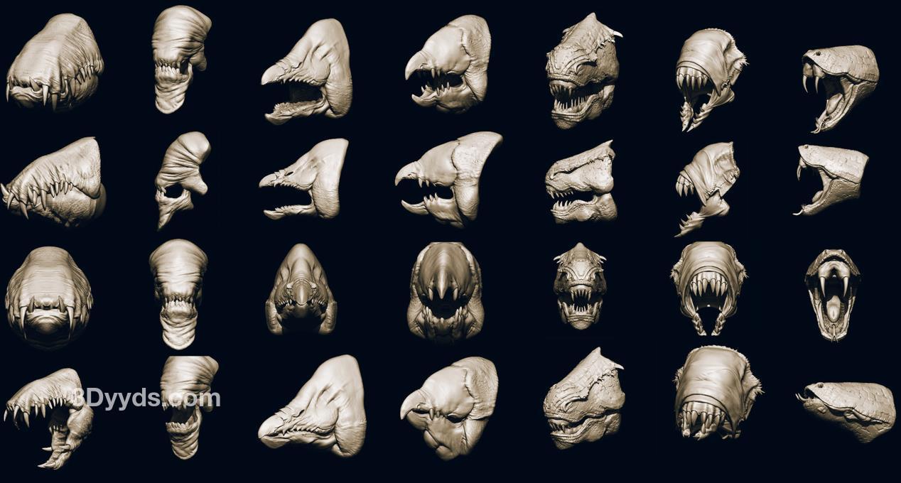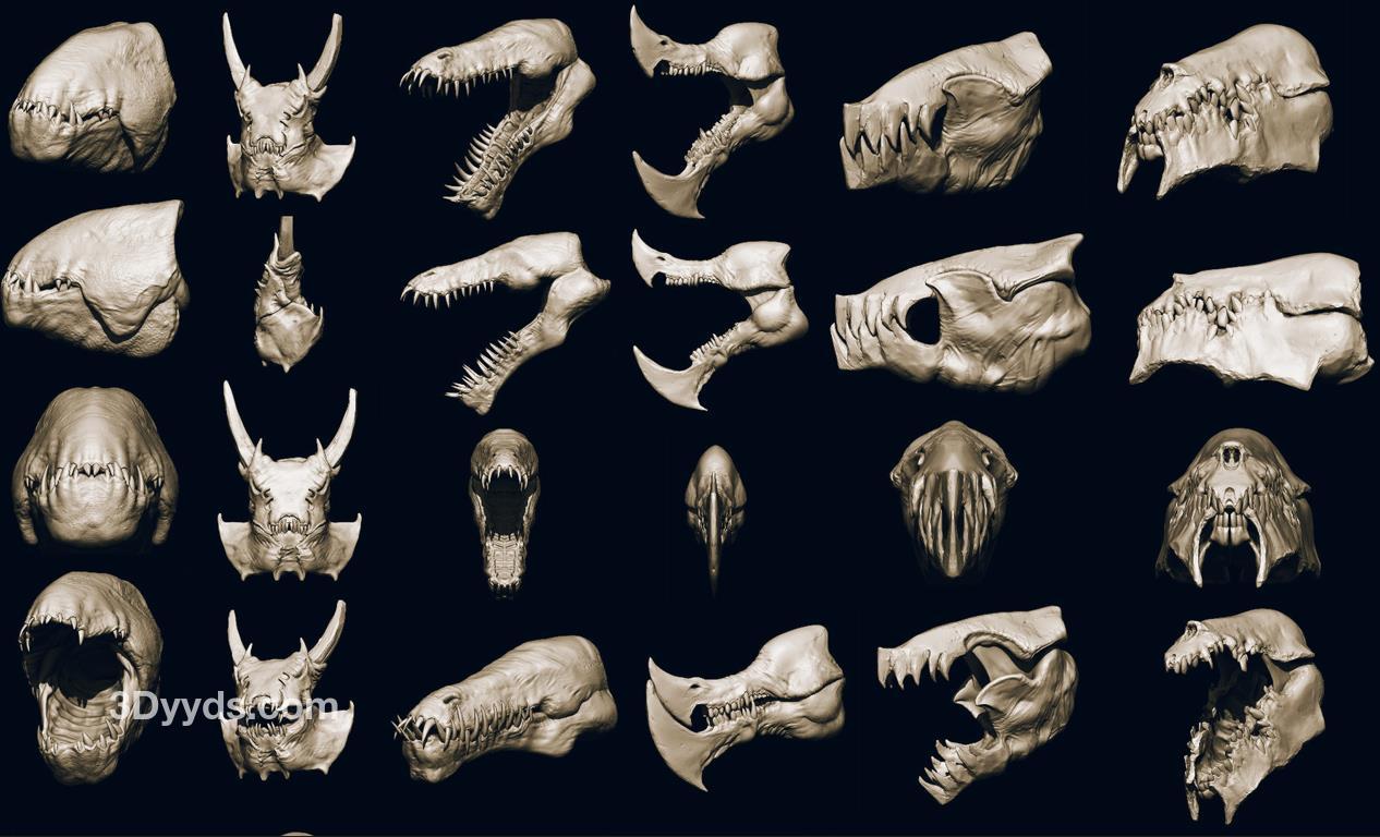 这是一个很好的创意起点 - 可以快速提升3D雕塑/设计/概念构思,甚至可以改变和增强现有的雕塑。包括一个ZBrush插入网格笔刷,其中包含所有下颚,一个包含所有下颚的ZBrush主文件作为单独的子工具(组织和多边形分组),以及FBX和OBJ文件。这些是未贴图的高面数雕塑。
