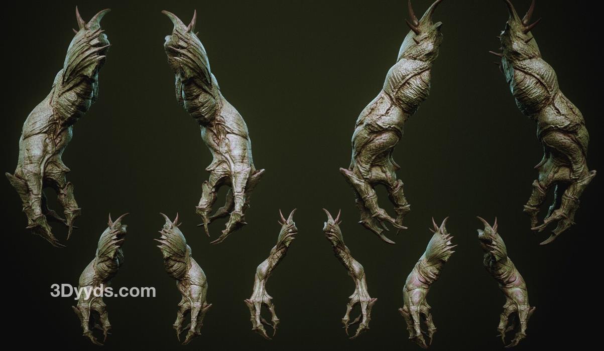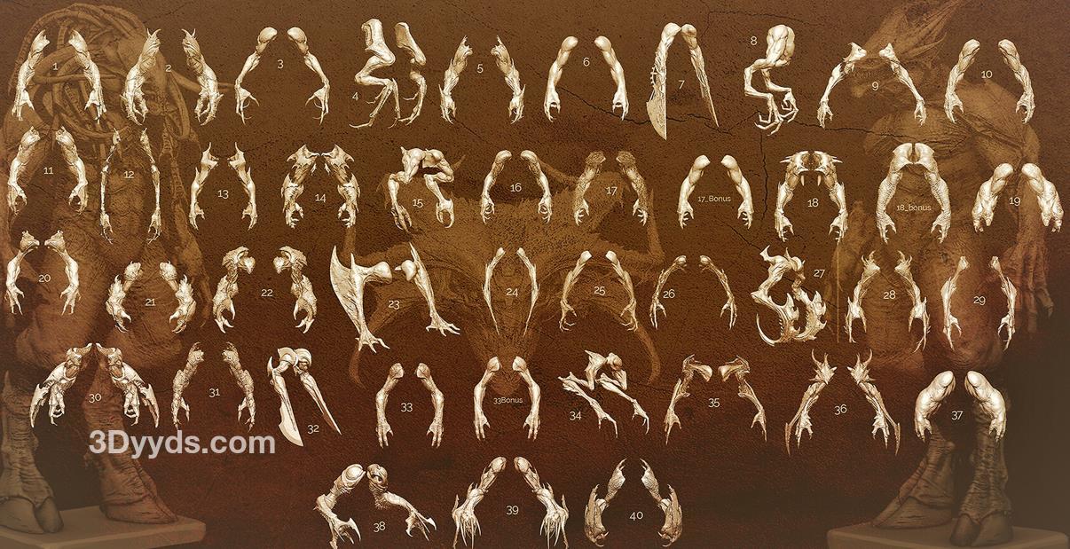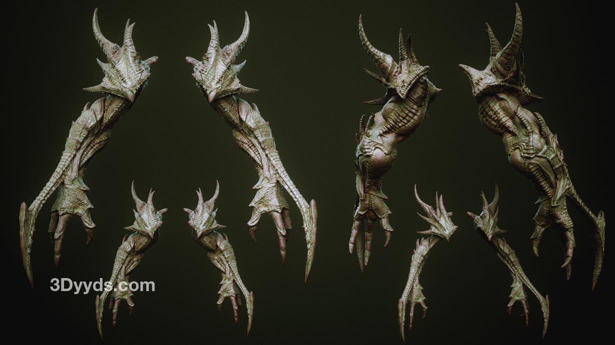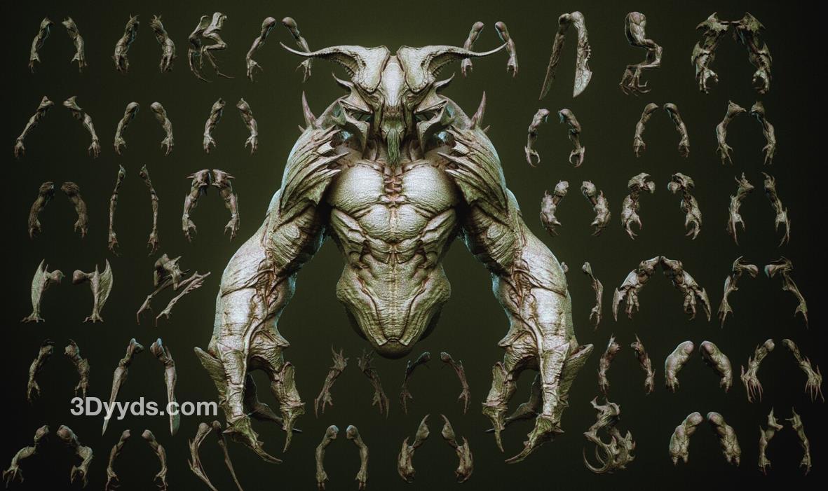 zbrush93野兽怪物粗壮手臂肢体笔刷模型OBJ白模MAX野怪素材