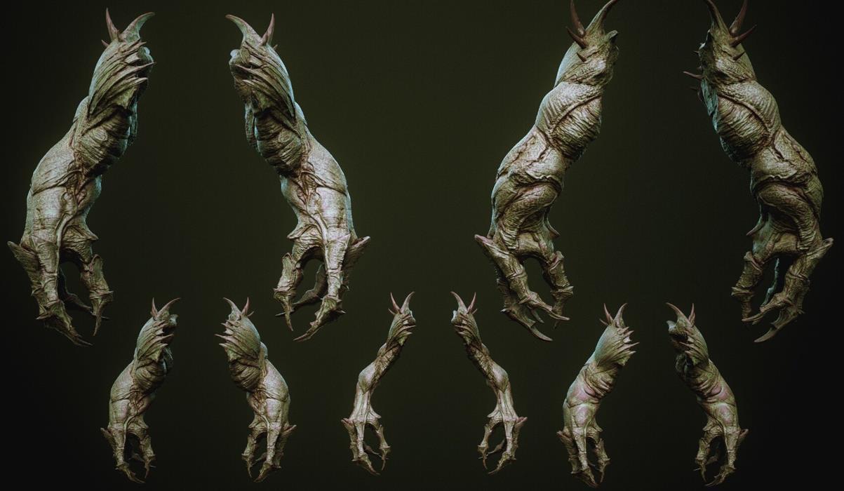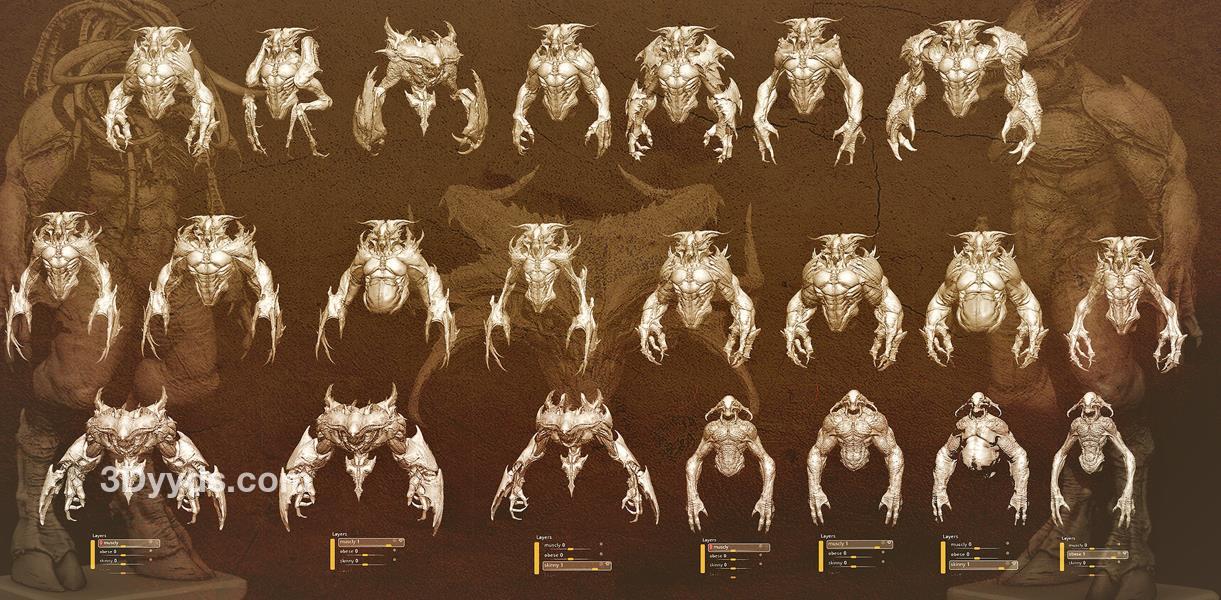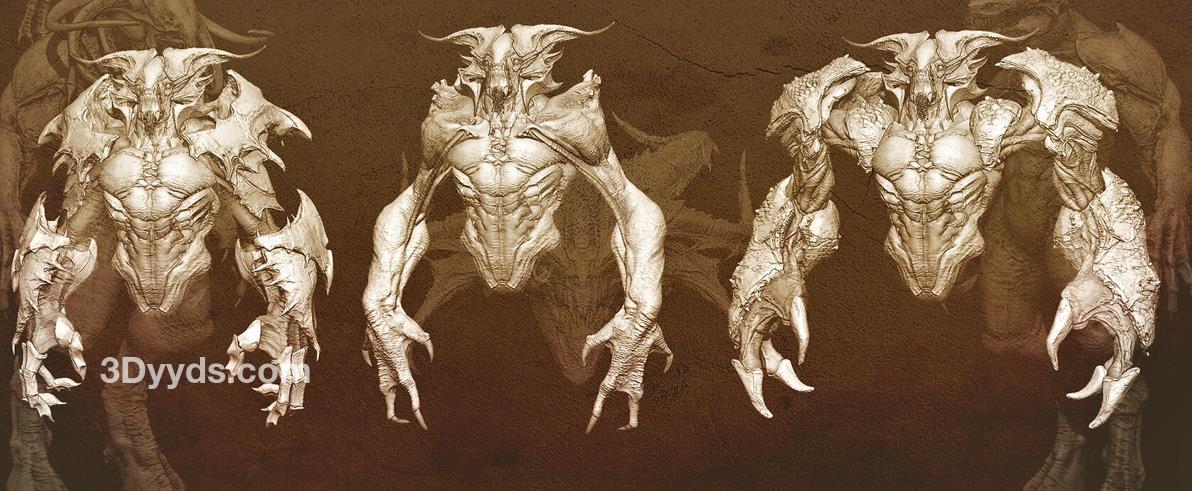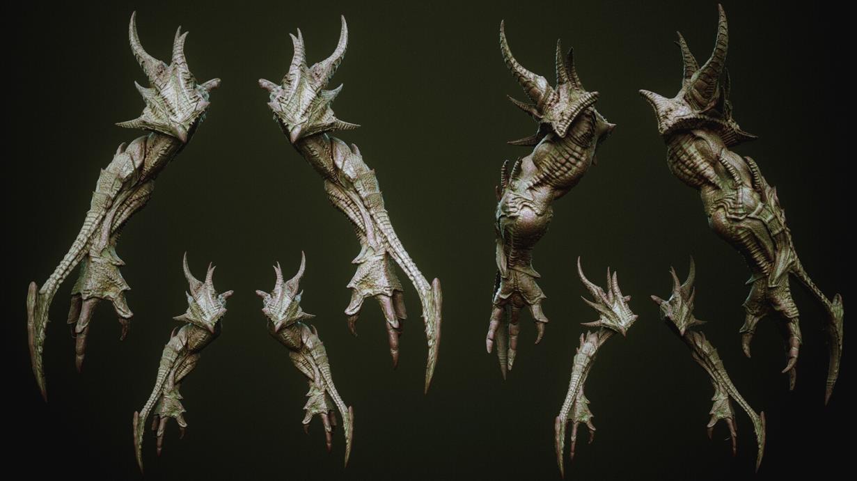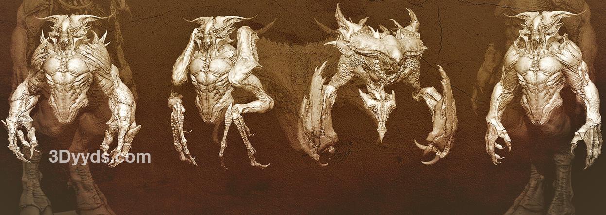 zbrush93野兽怪物粗壮手臂肢体笔刷模型OBJ白模MAX野怪素材