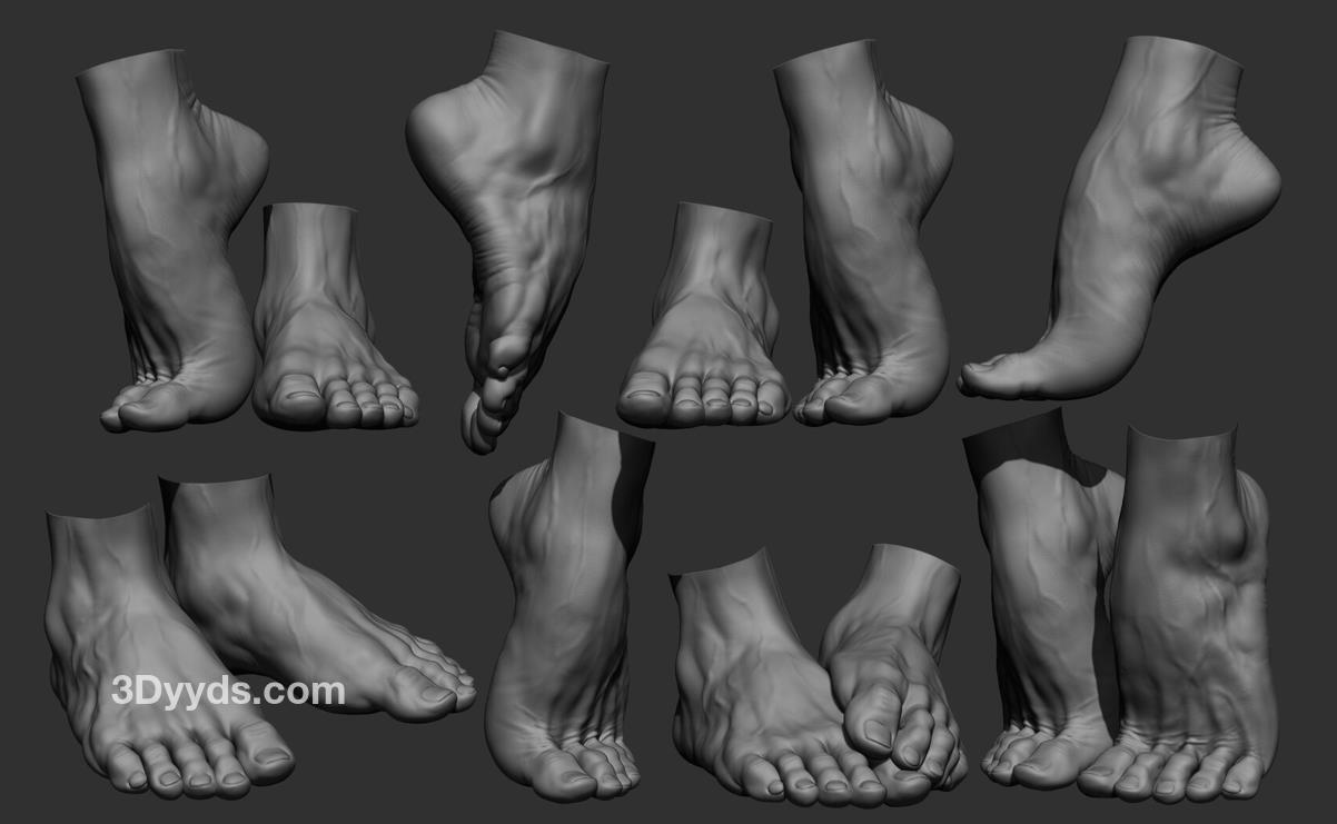 这是我最近在Zbrush中制作的逼真男性脚部姿势合集。