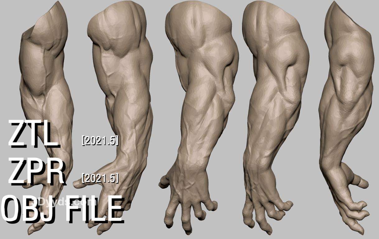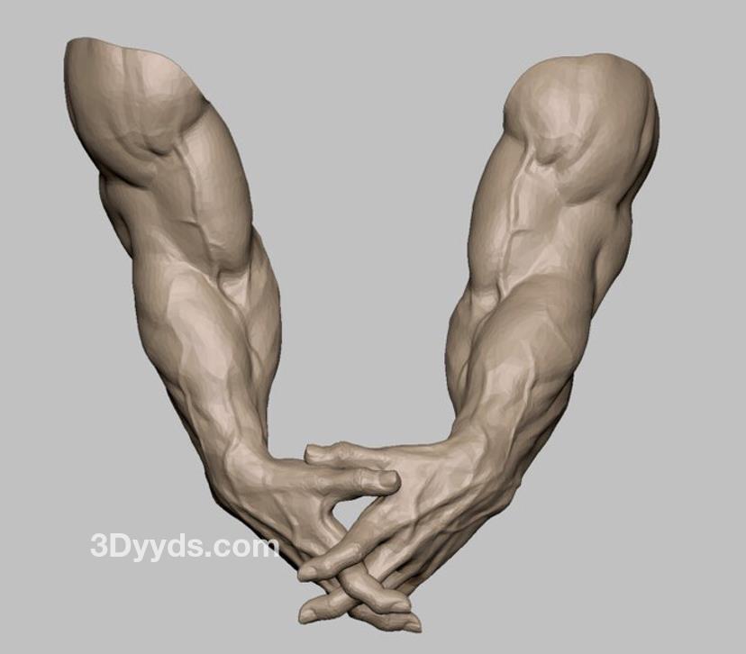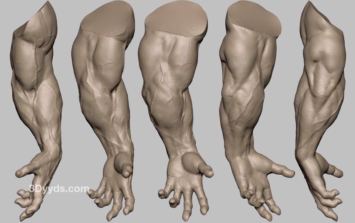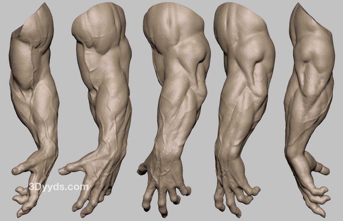zbrush粗壮肌肉手臂3D模型amp上臂肌肉血管OBJ白模