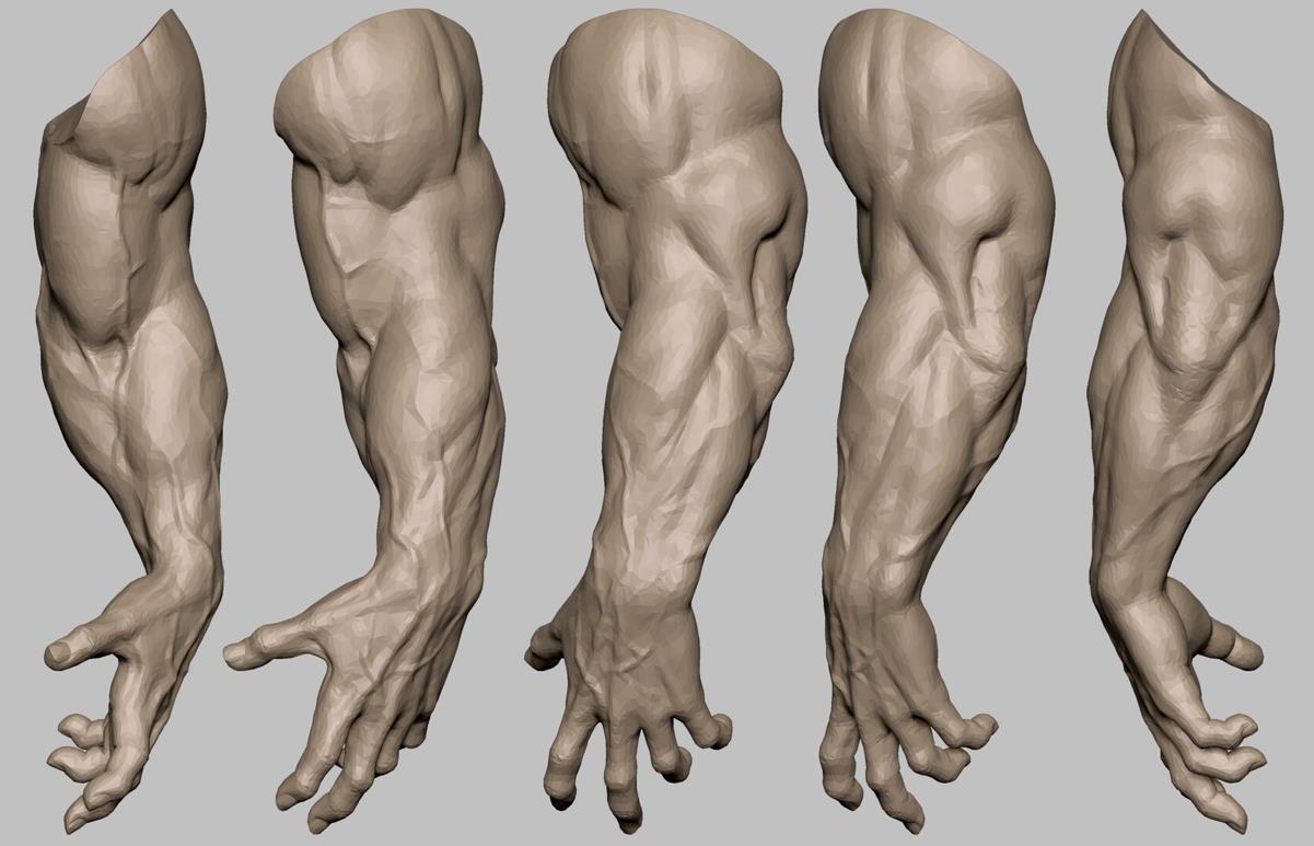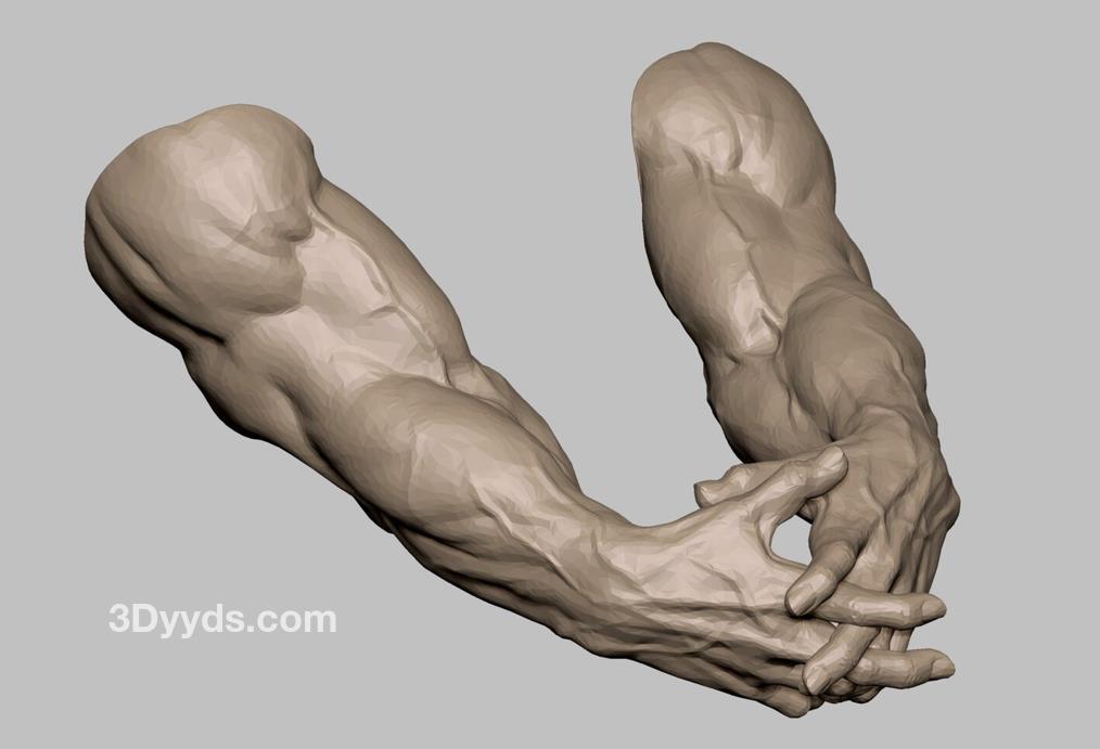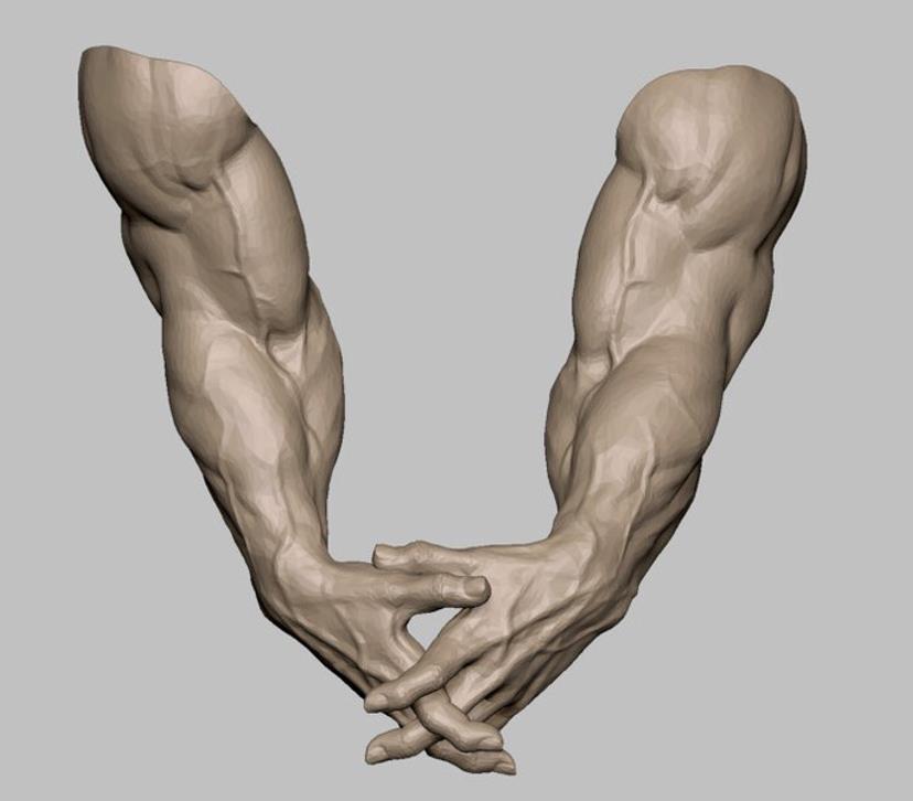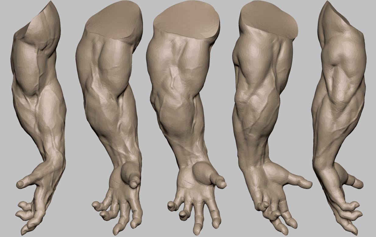 zbrush粗壮肌肉手臂3D模型amp上臂肌肉血管OBJ白模