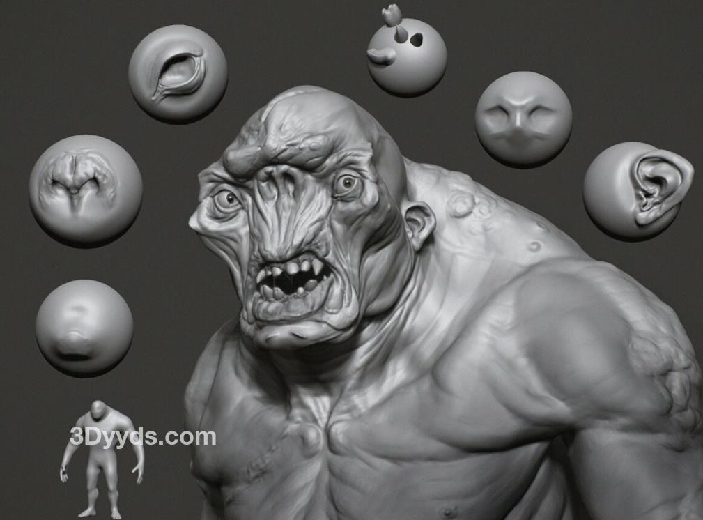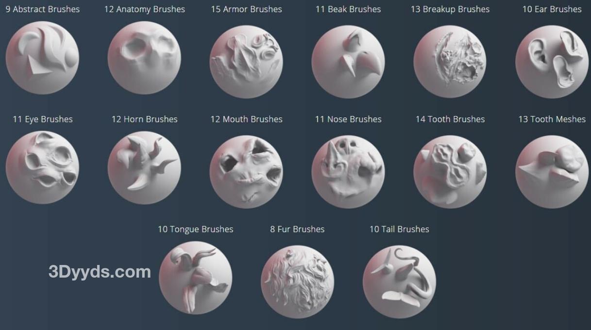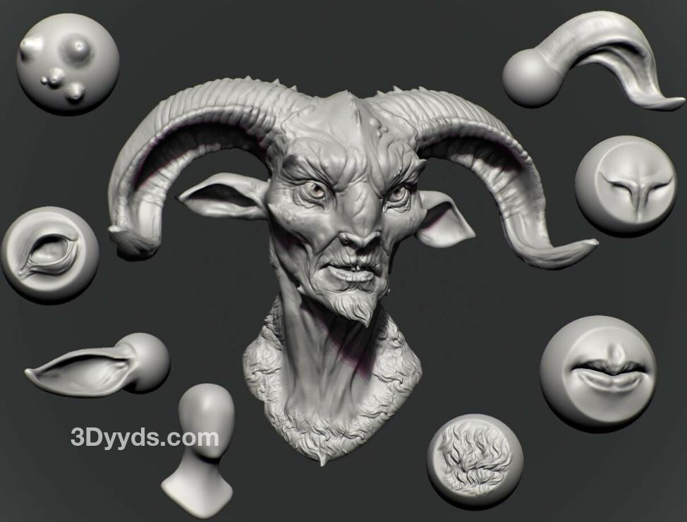 zbrush毛发23羊人怪物嘴巴眼睛耳朵鼻子雕刻笔刷&毛发