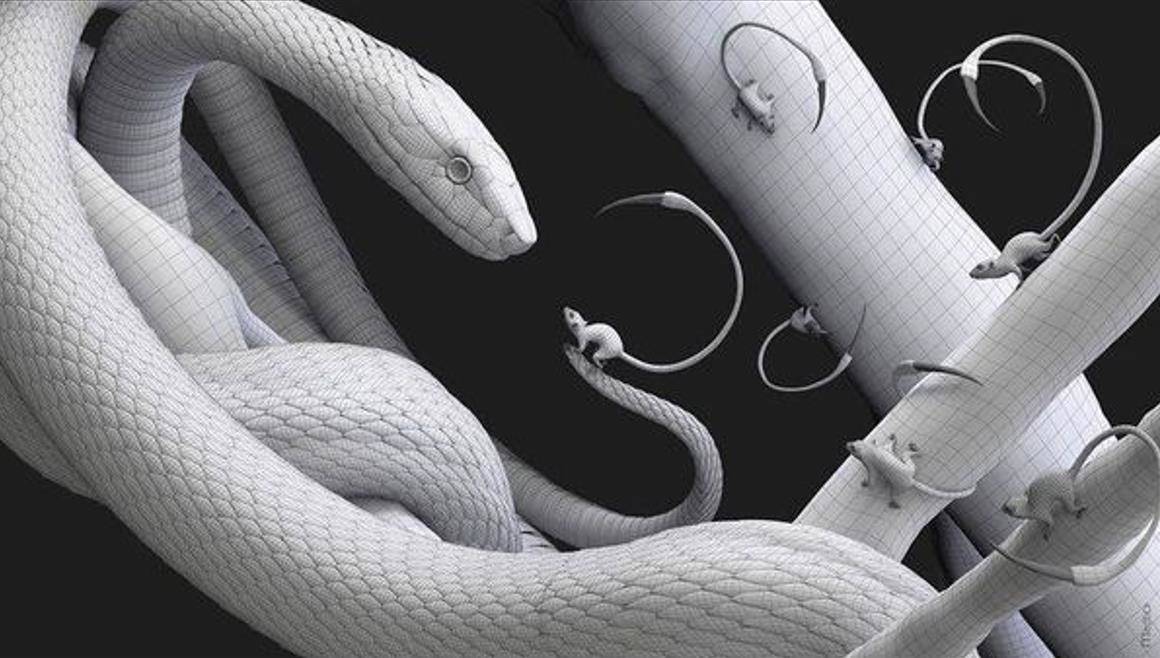 zbrush97爬行动物蛇身体尾巴曲线笔刷&蝰蛇毒蛇蜥蜴尾巴雕刻