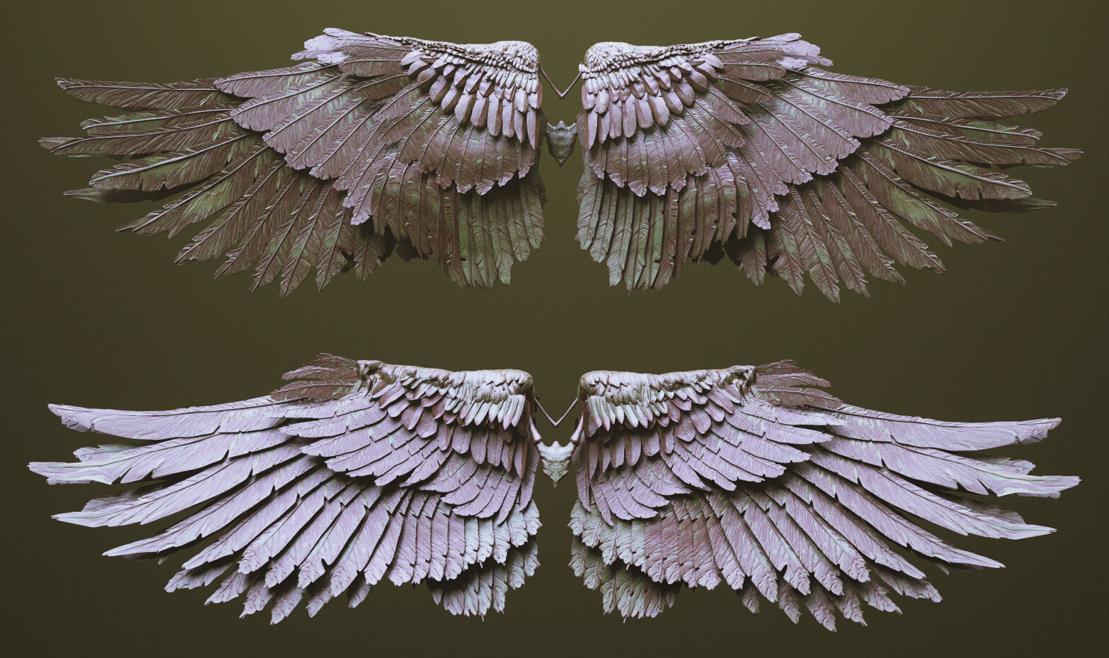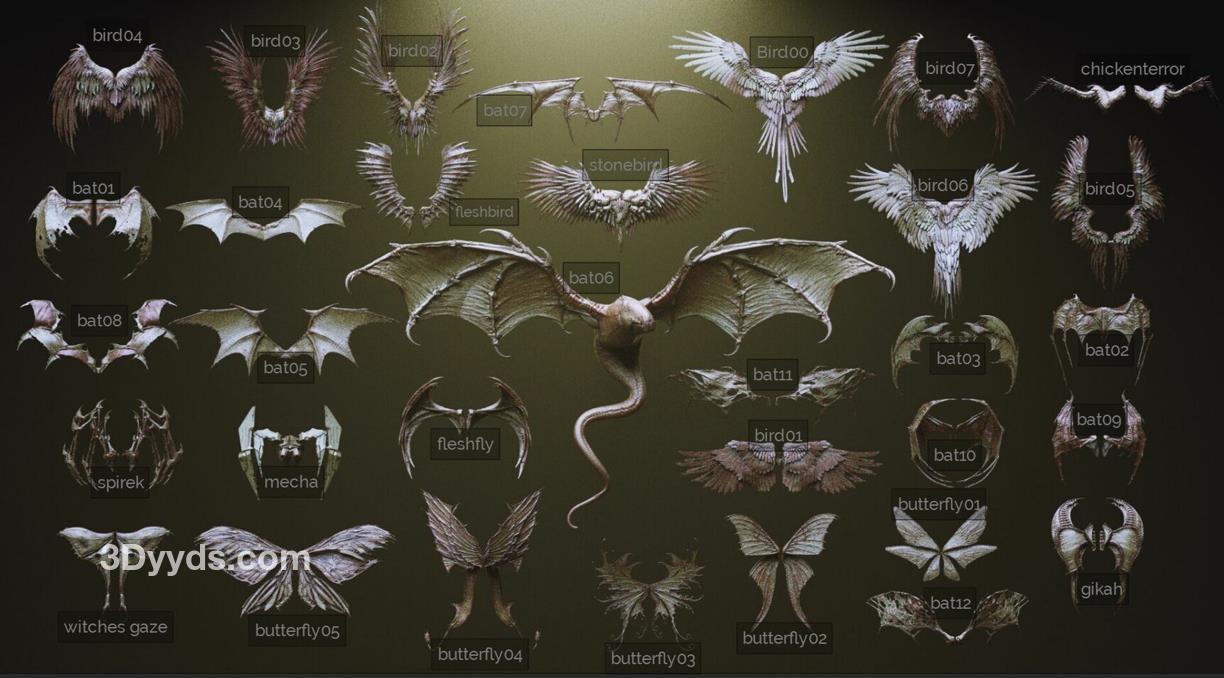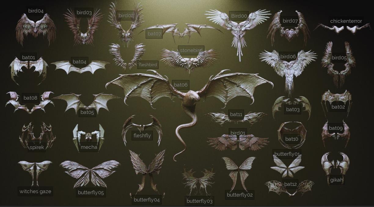 - Zbrush 主文件,所有翅膀都作为单独的子工具 (.ZTL)