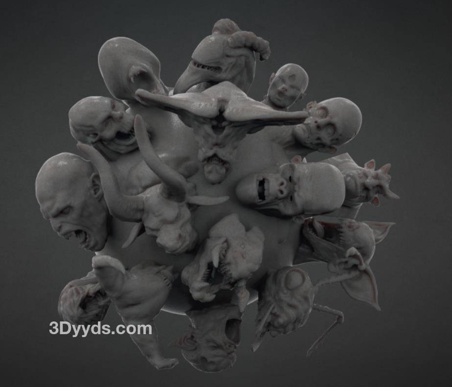 zbrush怪兽头像头颅颅骨头骨笔刷zbp&角色头部