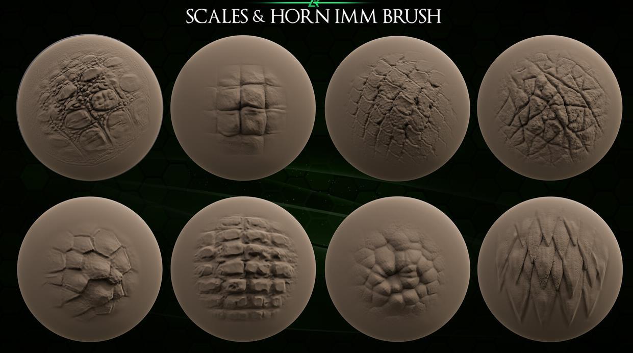 50 个 Zbrush ZBP 格式的 IMM 刷子, 25 个角和 25 个鳞片