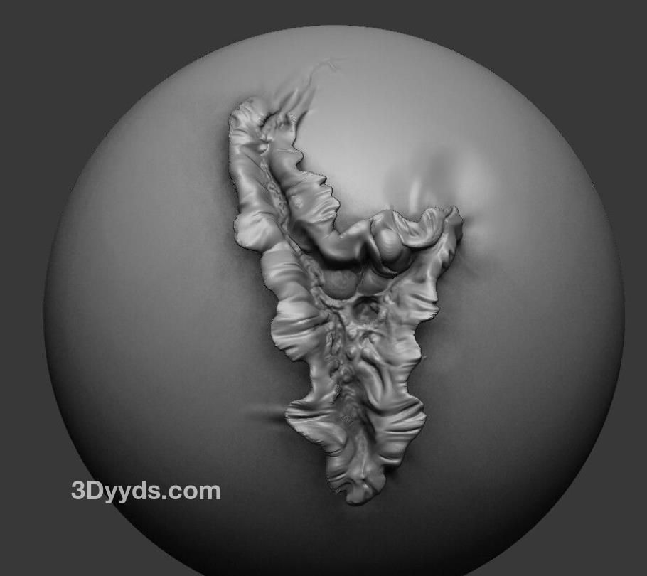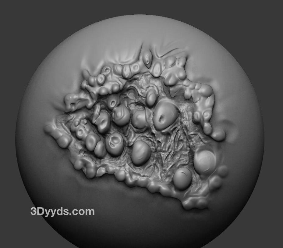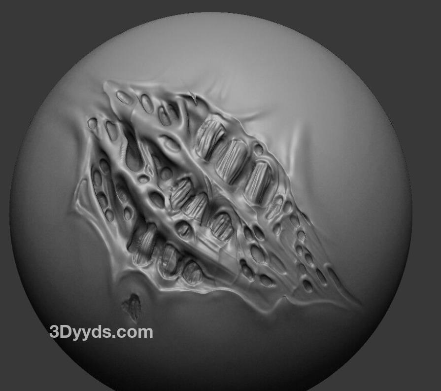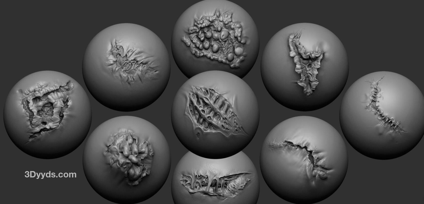 zbrush109皮肤伤疤雕刻笔刷&腐败丧尸僵尸人物怪物皮肤