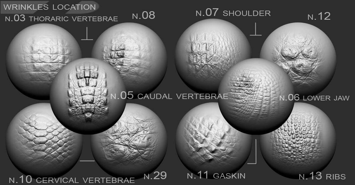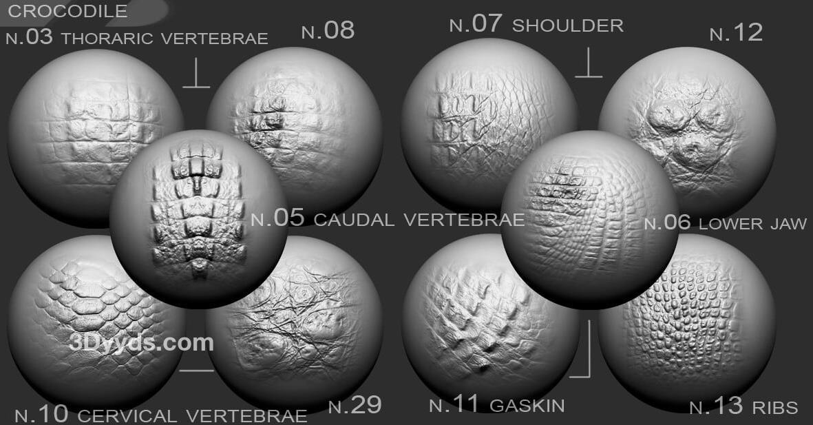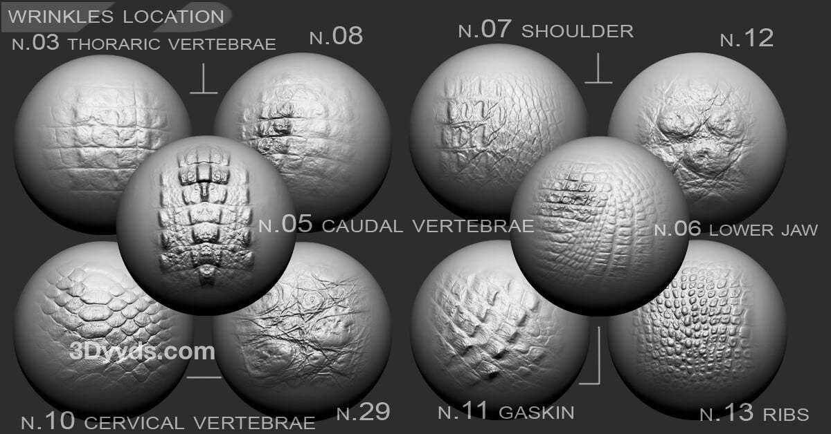 按文件夹分离: 鳄鱼 - 15 个文件 .TIF, PSD + VDM 龙 - 18 个文件 .TIF, PSD + VDM 蜥蜴-爬行动物 - 16 个文件 .TIF, PSD + VDM 蛇 - 12 个文件 .TIF, PSD + VDM 皱纹 - 42 个文件 .TIF, PSD + VDM