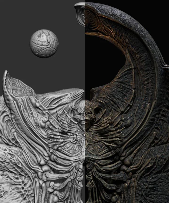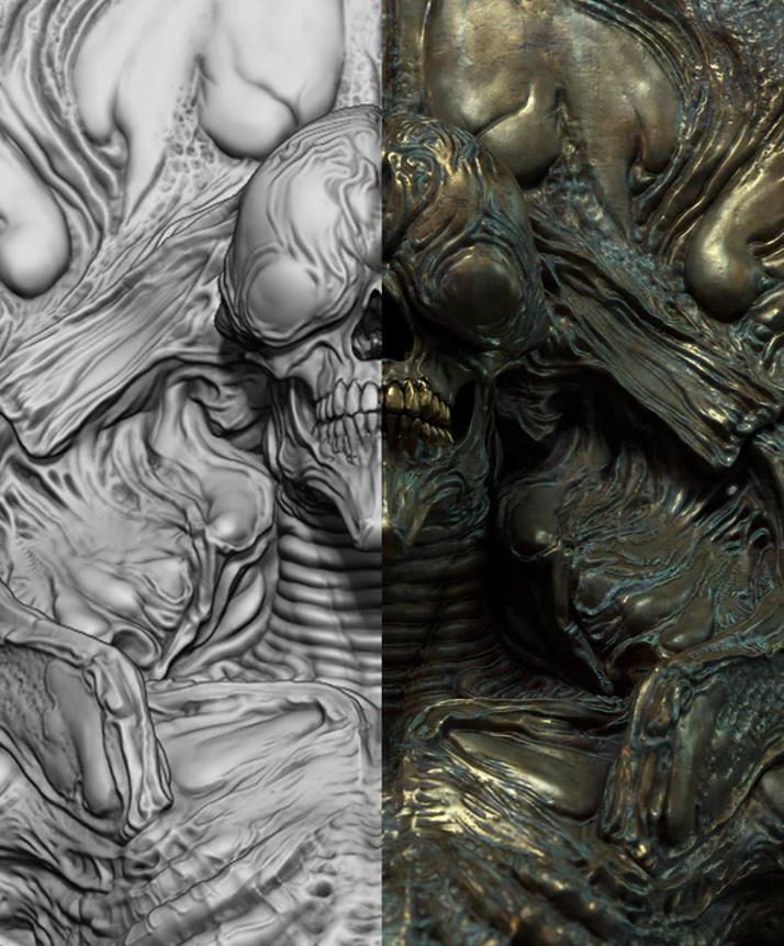 请记住,虽然画笔的效果从 Giger 和 Beksinski 的作品中汲取灵感,但它们也可以以多种方式使用,并且对各种风格都非常有帮助。