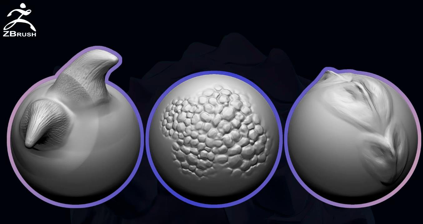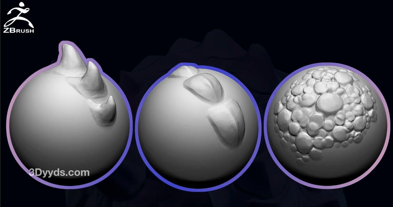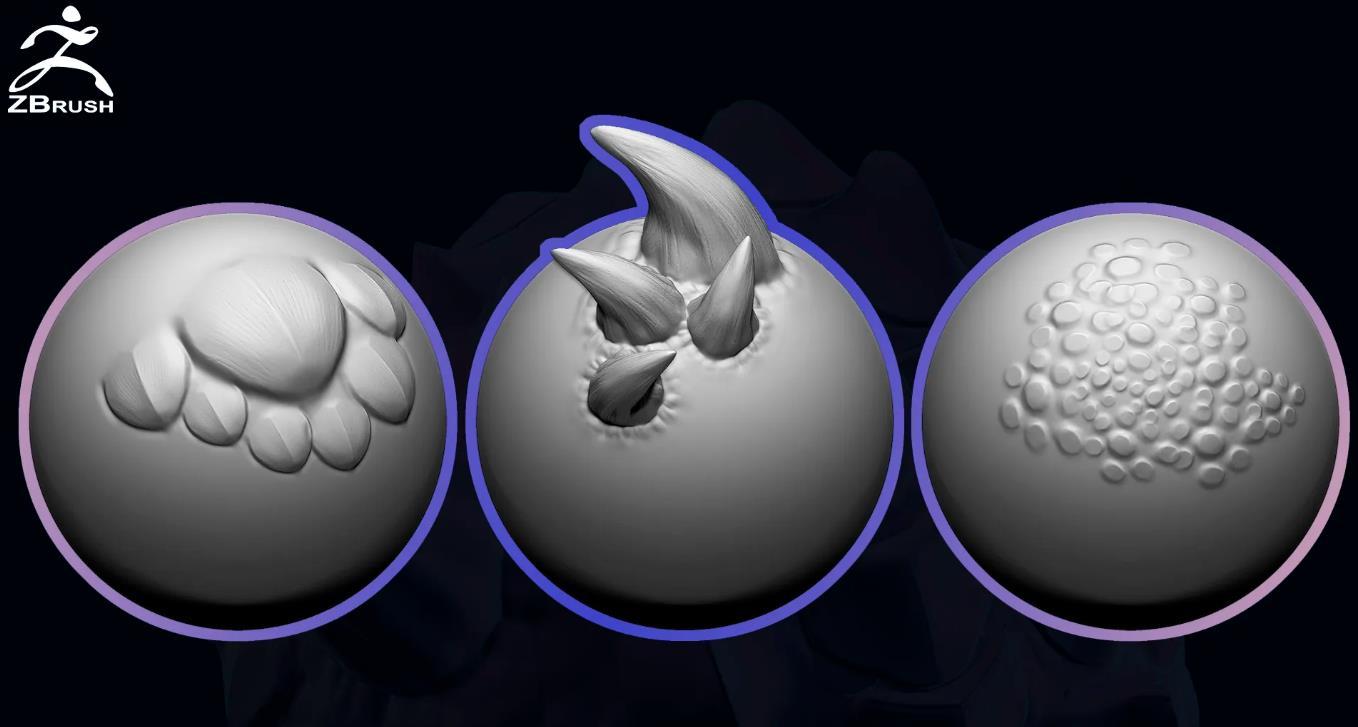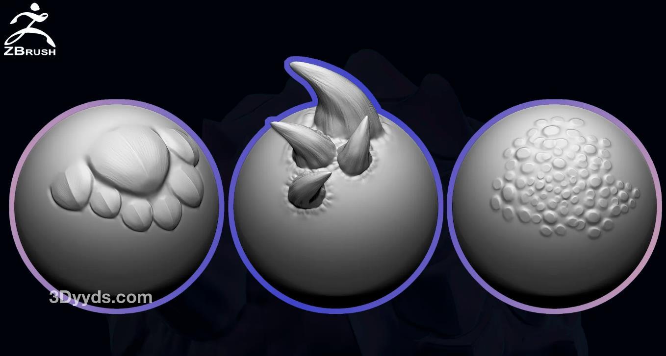 这是为ZBrush设计的20个VDM笔刷,用于创建龙(爬行动物)皮肤。
