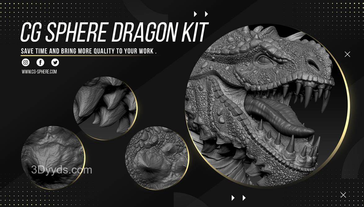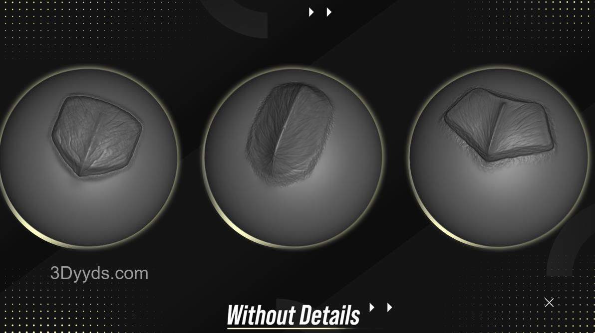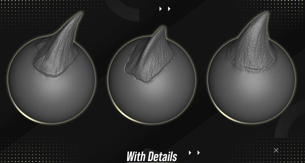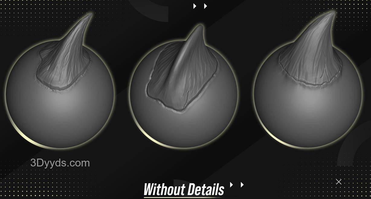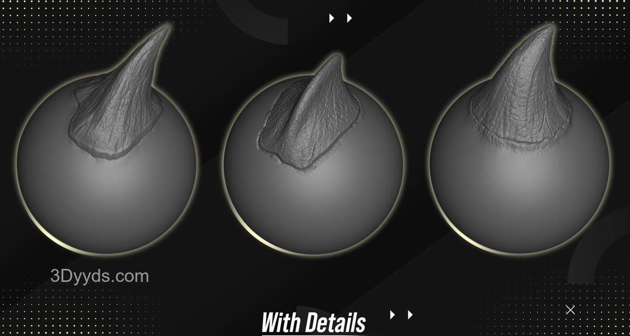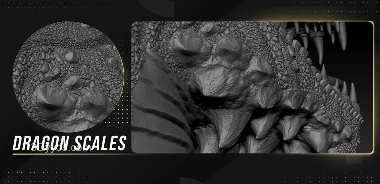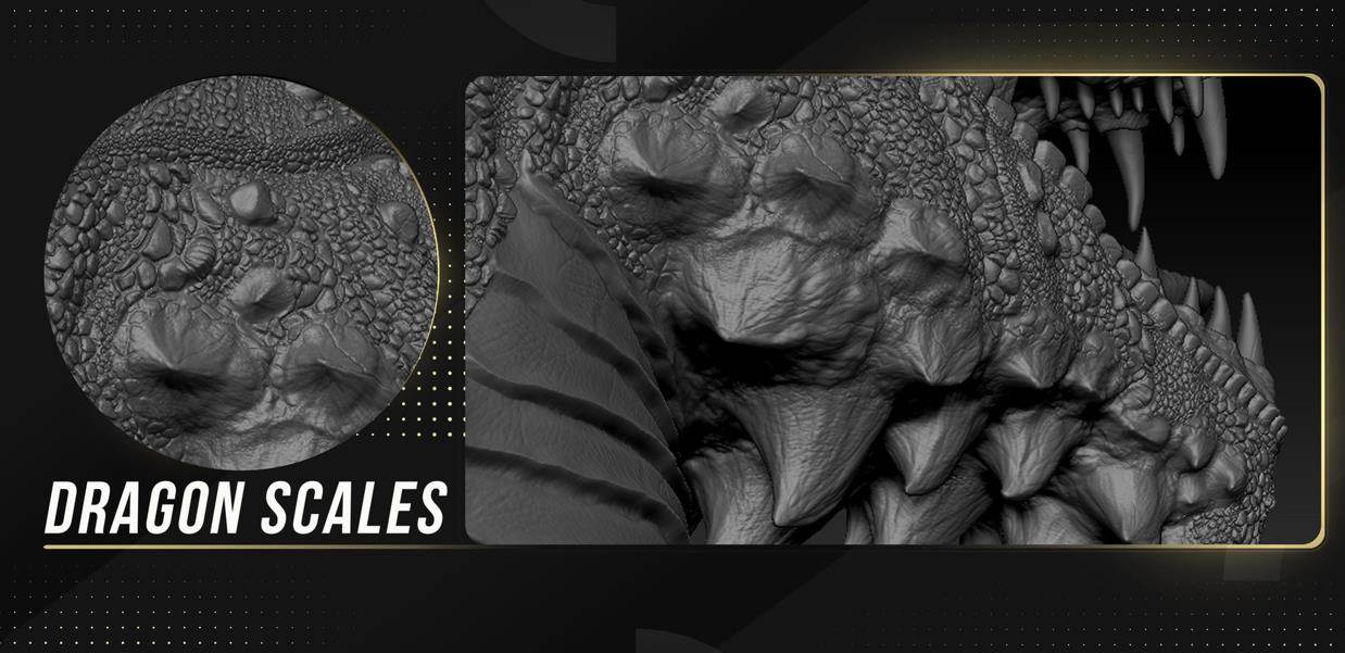 "细节对于您的作品和作品集非常重要,细节越多,工作就越显贵重。 所有你需要详细描述你的龙和生物的东西 兼容:Zbrush 2021 这些VDM画笔将帮助您在几分钟内创建出动物和生物上的精美细节,而不是花费数小时!"