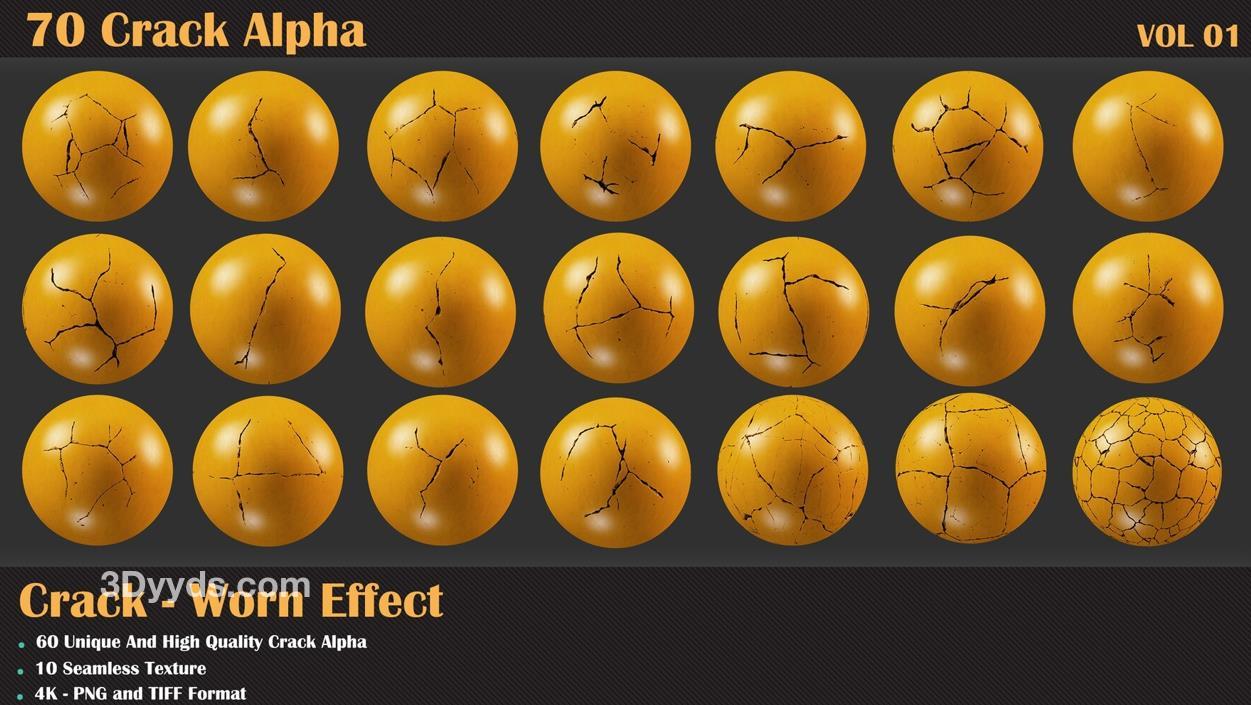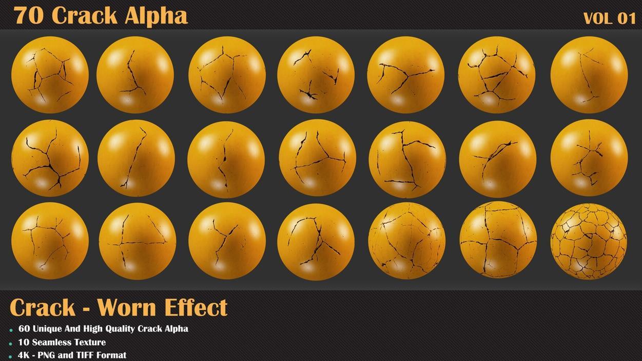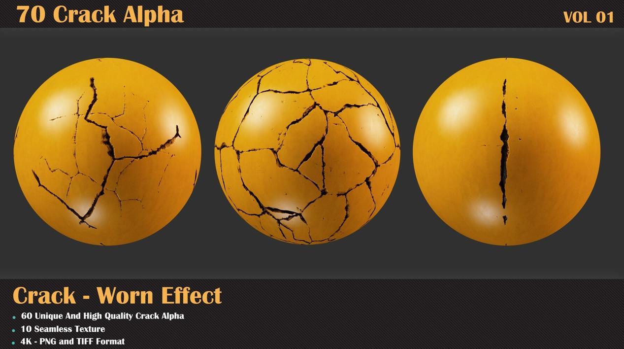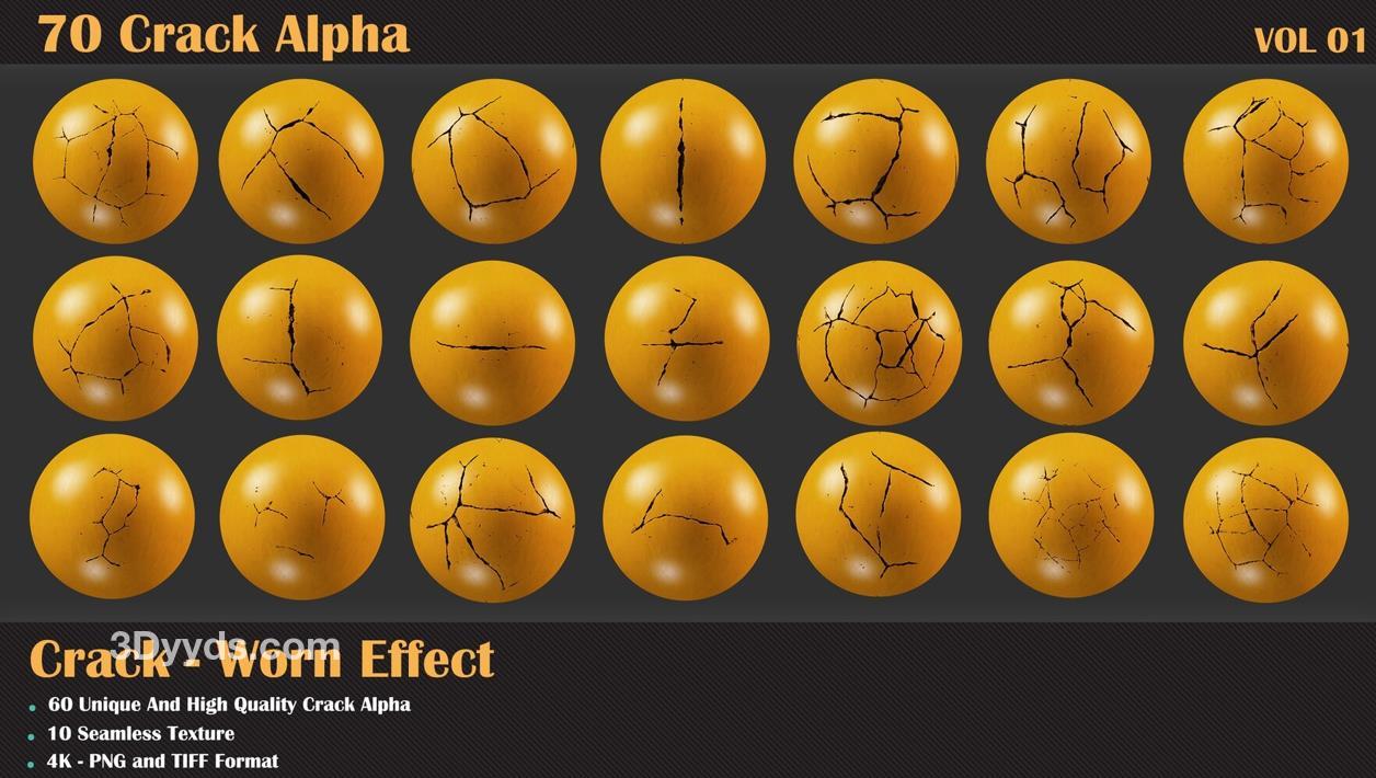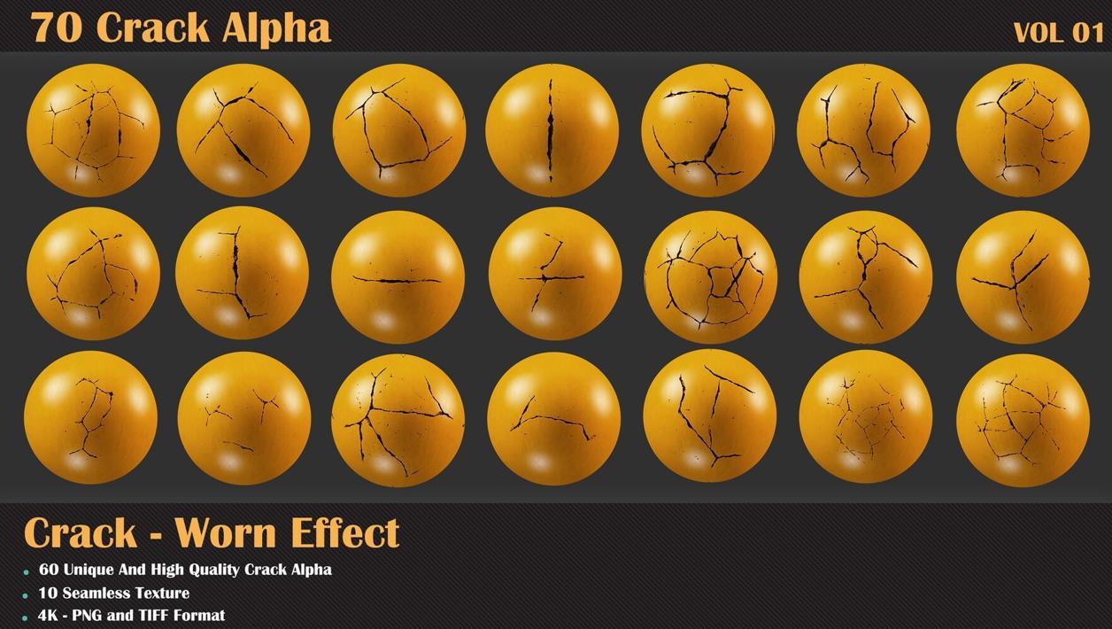 60个裂缝阿尔法和10个无缝纹理
